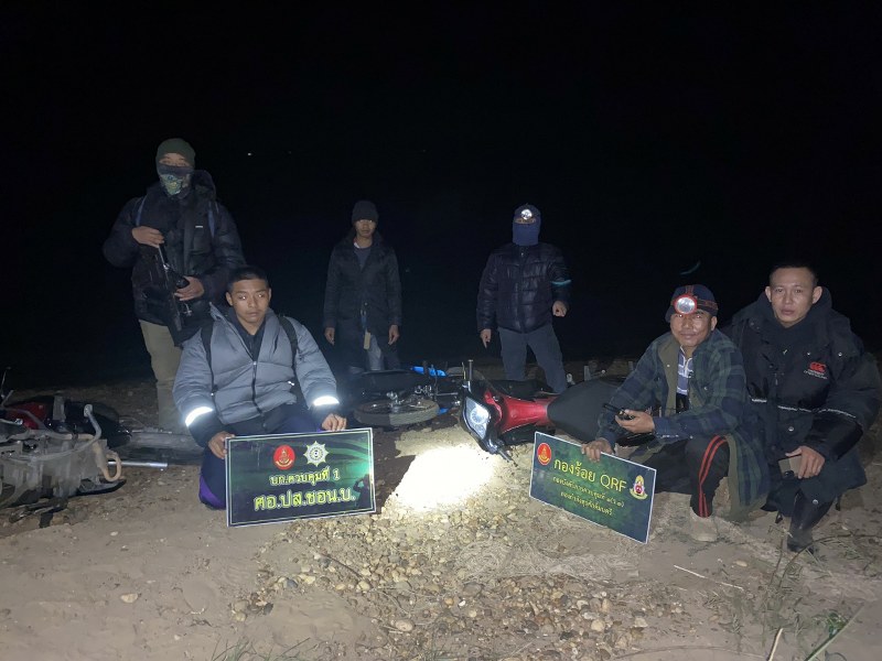 ซุ่มเฝ้าตรวจจุดเพ็งเล็งในพื้นที่ดังกล่าว พบกลุ่มผู้ต้องสงสัยกำลังยกรถจักรยานยนต์ขึ้นเรือกีบหางยาวติดเครื่องยนต์ เจ้าหน้าที่จึงได้แสดงตนเพื่อตรวจสอบ เมื่อกลุ่มผู้ต้องสงสัยเห็นทาง จนท.จึงหนีขึ้นเรือขับหลบหนีไป และอีกส่วนหนึ่งใช้ความชำนาญในพื้นที่วิ่งหลบหนีไป เจ้าหน้าที่จึงเข้าตรวจสอบพื้นที่พบรถจักรยานยนต์ จำนวน 12 คัน ดังนี้
