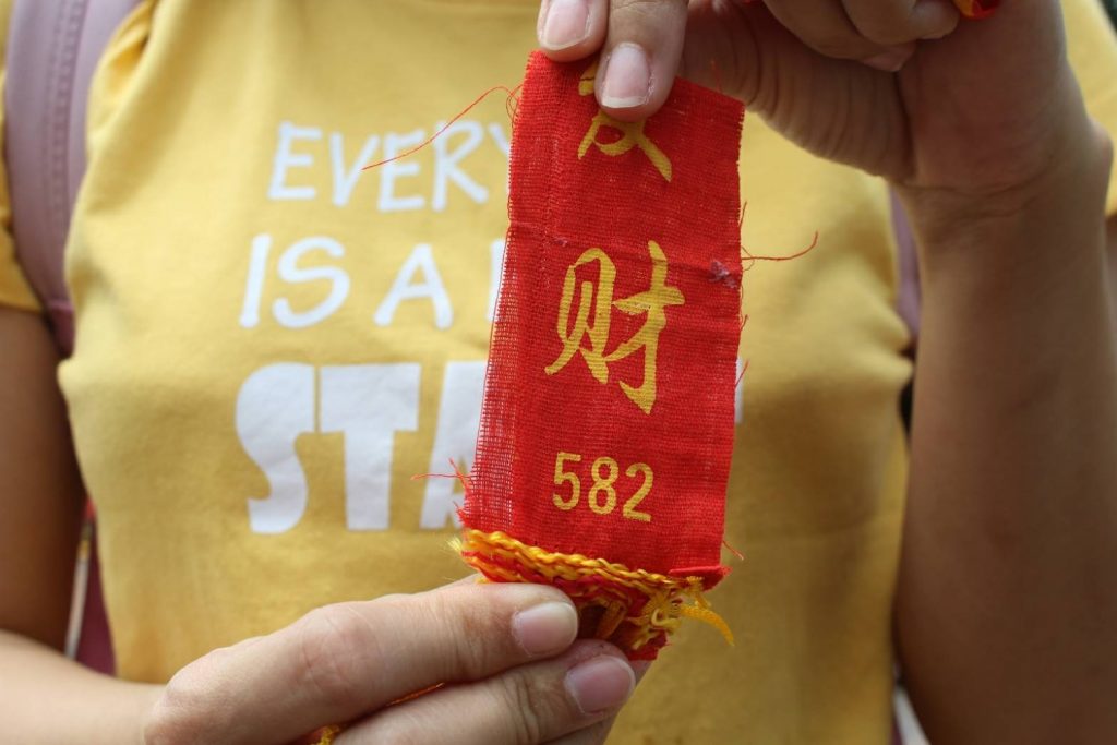 ด้าน น.ส.อุ่นเรือน ขำโพธิ์ อายุ 33 ปี อยู่บ้านเลขที่ 369/25 ต.สุรศักดิ์ อ.ศรีราชา จ.ชลบุรี ผู้โชคดีได้เลข 3 ตัวตรงจากเจ้าสัวเฮง กล่าวว่า ก่อนหน้านี้ตนได้เข้ามากราบไหว้ กุมารเจ้าสัวเฮง พร้อมจุดประทัดแล้วได้กระดาษสีแดง หลังจะปรุทัดเป็นเลข 582 (ไม่ขอบอกว่าถูกเท่าไหร่) วันนี้จึงมาขอโชคและมาแก้บน พร้อมนำของมาถวายกุมารเจ้าสัวเฮง มีปลาตะเพียนเงินตะเพียนทอง น้ำแดง ขนม และประทัด 1000 นัด ตนได้โชคมาจากเลขประทัดเลยมาแก้บน ตนมาจากชลบุรี มาอาทิตย์เว้นอาทิตย์ได้โชคทุกครั้งที่มา