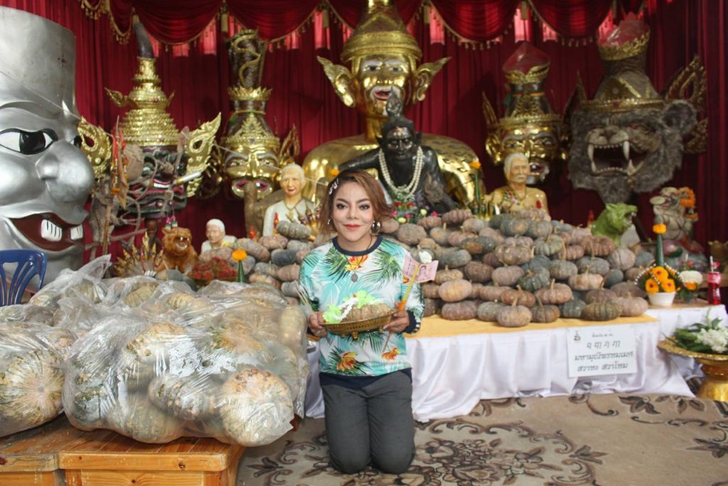เมื่อเวลา 13.30 น. วันที่ 11 ส.ค. 2562 ที่อาศรมฤๅษีเณร ถนนวงแหวนตะวันตกหมายเลข 9 บางปะอิน-ปทุมธานี น.ส.นุจรี ศรีราชา อดีตนักร้องดังเจ้าของเพลง หมาหยอกไก่ นำฟักทองจำนวน100ลูกมาบูชาพ่อปู่ฤาษีพรหมเมศ และ น.ส.อุ่นเรือน ขำโพธิ์ ชาวจังหวัดชลบุรี มาแก้บนประทัด1,000 นัด ปลาตะเพียนเงินตะเพียนทองใบลาน และขนม ที่กุมานเจ้าสัวเฮง หลังจากได้เลขจากประทัดที่มาคราวก่อน