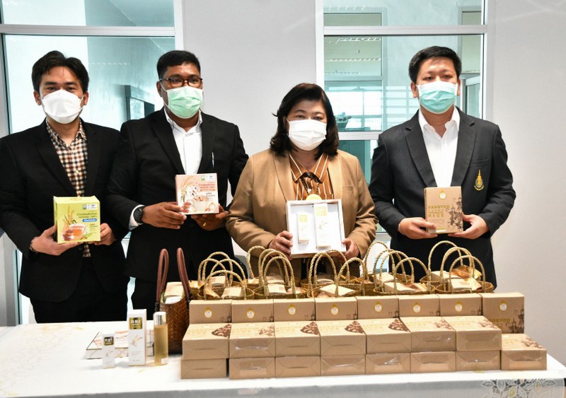 ข้าวกล้องสังข์หยดอินทรีย์ โดยการนำองค์ความรู้ ผลงานวิจัยและนวัตกรรม สู่กระบวนการผลิตที่ผ่านมาตรฐานอินทรีย์และ GI ในรูปแบบของ เครื่องดื่มฟังก์ชันนอลชนิดผงสำเร็จรูปจากสารสกัดข้าวกล้องสังข์หยดอินทรีย์สำหรับผู้สูงวัย และวัยทำงาน และพัฒนาเป็นเครื่องดื่มฟังก์ชันนอล 2 สูตร คือ “สูตรเสริมถั่ว5 สี” มีส่วนช่วยในการบำรุงร่างกาย มีสารต้านอนุมูลอิสระ และโปรตีนสูงเสริมสร้างความแข็งแรงให้แก่กล้ามเนื้อหัวใจ และ “สูตรเสริมโพรไบโอติก” ที่มีส่วนช่วยในการขับถ่ายที่ปลอดภัยเหมาะกับกลุ่มผู้สูงอายุและวัยทำงานผลผลิตจากโครงการการพัฒนาผลิตภัณฑ์เครื่องดื่มฟังก์ชัน จากข้าวกล้องสังข์หยดอินทรีย์หักท่อน “เพื่อสุขภาพ” ด้วยองค์ประกอบทางเคมีของข้าวสังข์หยดพัทลุง ที่มีคุณค่าทางโภชนาการที่สูงมากเมื่อเทียบกับข้าวทั่วไป อุดมไปด้วยสารต้านอนุมูลอิสระที่มีกลไกที่ช่วยป้องกันและยับยั้งการเกิดโรคจากความเสื่อมของเซลล์ ช่วยชะลอความชราและลดความเสี่ยงในการเป็นโรคต่างๆ ที่มักพบในผู้สูงวัย สาร Gamma Amino Butyric Acid (GABA) ช่วยบำรุงระบบประสาทและสมอง ช่วยลดโอกาสในการเป็นมะเร็งได้เป็นอย่างดี มี ธาตุเหล็ก ธาตุฟอสฟอรัสสูง ซึ่งมีประโยชน์ในการบำรุงโลหิต บำรุงร่างกายให้แข็งแรง ช่วยเสริมสร้างส่วนที่สึกหรอ เสริมความแข็งแรงของกระดูกและฟัน และปริมาณไนอาซินที่สูงมาก ช่วยในการป้องกันสภาวะการผิดปกติทางระบบประสาทและความจำเสื่อม