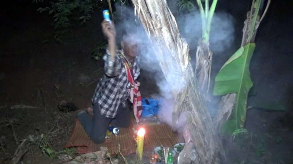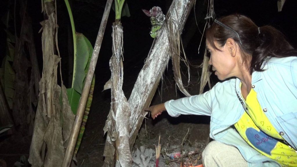 จากการสอบถาม นายกิตติศักดิ์ วังคีรี อายุ 35 ปี เจ้าของสวนเล่าให้ฟังว่า ก่อนหน้านี้ ขณะที่ตนนอนหลับสนิท ได้ฝันว่ามีผู้หญิงสวย แต่งกายด้วยชุดไทยสวยงาม ได้ใช้มีดถากถางหญ้า ทำความสะอาดอยู่ตรงบริเวณที่ต้นกล้วยประหลาดขึ้นอยู่ และเมื่อตื่นเช้ามาตนจึงนำความฝันดังกล่าว ไปเล่าให้ชาวบ้านฟัง จากนั้นเพื่อนบ้านเลยชักชวนกัน ออกเดินหาต้นกล้วยตามความฝัน จนกระทั่งไปพบอยู่ในสวนมะขาม ซึ่งตนได้ปลูกกล้วยน้ำว้าไว้เป็นแนวสวน โดยกล้วยต้นนี้ แตกต่างจากต้นอื่นๆอย่างชัดเจน เพราะออกลูกกลางลำต้น แทนที่จะออกปลายยอดตามปกติ ทำให้ชาวบ้านต่างพากันคิดว่ามีสิ่งศักดิ์สิทธิ์ สิงสถิตย์อยู่ที่กล้วยต้นนี้ จึงนำดอกไม้ ธูปเทียน ขันธ์ 5 มากราบไหว้บูชาตามความเชื่อ หวังนำเลขเด็ดไปเสี่ยงโชคกันตามระเบียบ