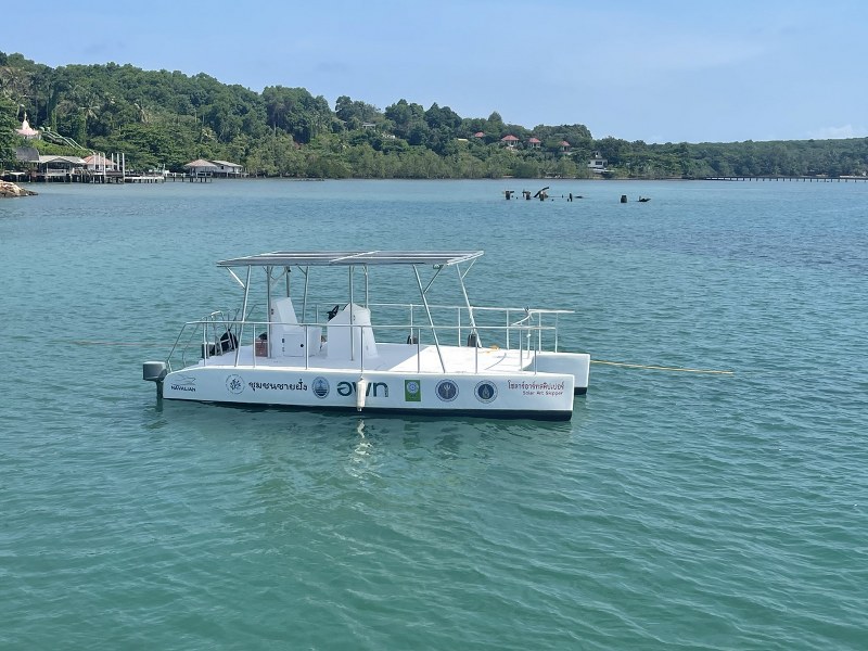 สำนักงานการวิจัยแห่งชาติ (วช.) กระทรวงการอุดมศึกษา วิทยาศาสตร์ วิจัยและนวัตกรรม (อว.) พร้อมด้วยทีมวิจัยจากมหาวิทยาลัยมหิดล ร่วมกับ องค์การบริหารการพัฒนาพื้นที่พิเศษเพื่อการท่องเที่ยวอย่างยั่งยืน (องค์การมหาชน) กรมทรัพยากรทางทะเล และชายฝั่ง องค์การบริหารส่วนตำบลเกาะหมาก กลุ่มอนุรักษ์ปะการังเกาะหมาก จังหวัดตราด ขยายผลการใช้ประโยชน์ผลงาน “นวัตกรรมเรือไฟฟ้าพลังงานแสงอาทิตย์” เพื่อส่งเสริมนโยบายการท่องเที่ยวอย่างยั่งยืน ในพื้นที่เกาะหมาก จังหวัดตราด