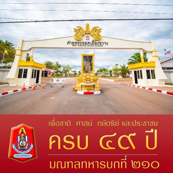 เวลา 07.30 น. พล.ต.สถาพร บุญชู ผู้บัญชาการมณฑลทหารบกที่ 210 (ผบ.มทบ.210) พร้อมด้วย คุณจีระนุช บุญชู ประธานสมาคมแม่บ้านทหารบก สาขา มทบ.210 นำคณะผู้บังคับบัญชา กำลังพล พร้อมด้วยสมาชิกสมาคมแม่บ้านฯ และน้องมัคคุเทศก์น้อย มทบ.210 รุ่นที่ 1 ร่วมประกอบพิธีสักการะสิ่งศักดิ์สิทธิ์ในค่ายพระยอดเมืองขวาง เนื่องในวันครบรอบ 49 ปี วันสถาปนา มทบ.210 โดยได้กระทำพิธีสักการะศาลปู่พระยอดเมืองขวาง สักการะพระพุทธศักดิ์สิทธิ์ วางพวงมาลาอนุสาวรีย์พระยอดเมืองขวาง และสักการะพระบรมรูปพระบาทสมเด็จพระจุลจอมเกล้าเจ้าอยู่หัว