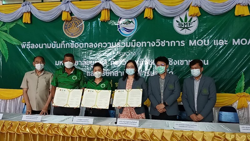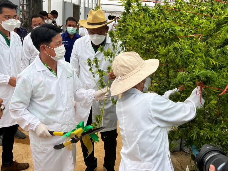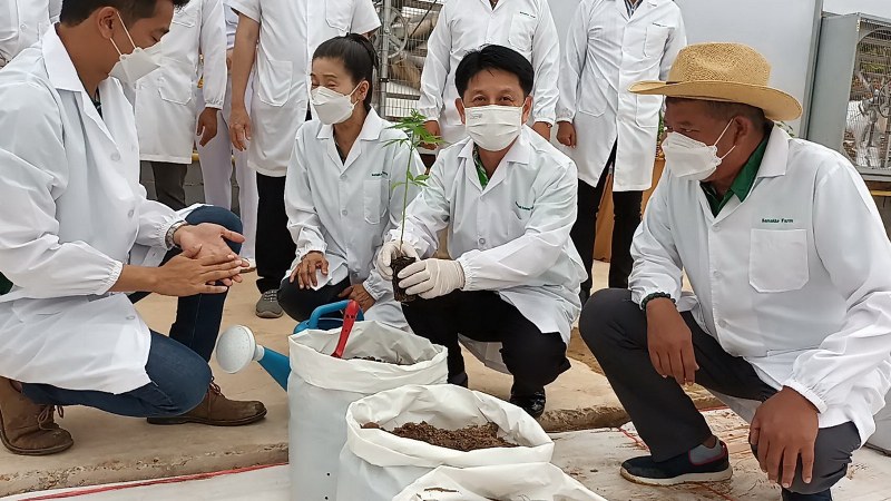 จากนั้น นายภัครธรณ์ เทียนไชย ผู้ว่าราชการจังหวัดชลบุรี พร้อมด้วยพลเรือเอก สุรพล คุปตะพันธ์ ประธานกรรมการบริหารฟาร์มสามัคคีฟาร์มและคณะผู้บริหารฟาร์มสามัคคีฟาร์ม คณะคณาจารย์ จากมหาวิทยาลัยต่างๆได้ร่วมกันปลูกต้นกัญชงในโรงเพาะเลี้ยง และได้เป็นประธานตัดดอกกัญชงเพื่อนำดอกไปสกัดสาร CBD แบบทั้ง Isolate และ Full Spectrum อีกด้วย นอกจากนี้นายภัครธรณ์ เทียนไชย ผู้ว่าราชการจังหวัดชลบุรี ยังเป็นสักขีพยานในการลงนามบันทึกข้อตกลงความร่วมมือทางวิชาการ MOUและMOA ระหว่าง มหาวิทยาลัยบูรพา กับวิสาหกิจชุมชนเชิงเขาหมอน และบริษัทสามัคคีฟาร์มจำกัด เพื่อการศึกษา คิดค้น พัฒนาต่อยอด ผลิตผลของกัญชง กัญชา เพื่อให้มีประสิทธิภาพมากยิ่งขึ้น