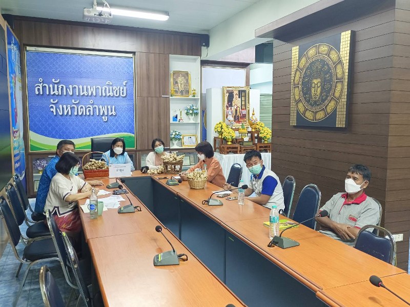 วันศุกร์ที่ 22 เมษายน 2565 เวลา 14.00 น. นางกนกรัตน์ ยุกติรัตน์ พาณิชย์จังหวัดลำพูน ร่วมกับ สำนักงานพาณิชย์จังหวัดภูเก็ต จัดกิจกรรมเชื่อมโยงตลาดเจรจาจับคู่ธุรกิจ Business matching ผลผลิตขิงของเกษตรกรอำเภอทุ่งหัวช้าง จังหวัดลำพูน กับ บริษัท ซุปเปอร์ชีป จำกัด จังหวัดภูเก็ต ผ่านระบบออนไลน์ Google Meet ณ ห้องประชุมสำนักงานพาณิชย์จังหวัดลำพูน ตำบลเวียงยอง อำเภอเมือง จังหวัดลำพูน โดยมี เกษตรกรอำเภอทุ่งหัวช้าง และผู้แทนเกษตรกรผู้ปลูกขิงอำเภอทุ่งหัวช้าง ร่วมเจรจาธุรกิจฯ