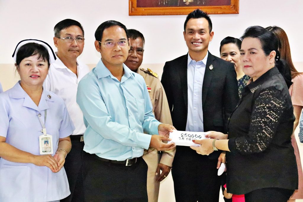 วันนี้ 14 ส.ค.62 นางสุพัตรา เผือกประพันธุ์ ผู้บริหารห้างทองสุพัตราเยาวราช พร้อมด้วยบุตรชาย ดร.สะถิระ (ดร.เอ) เผือกประพันธุ์ สมาชิกสภาผู้แทนราษฎร เขต 8 อ.สัตหีบ จ.ชลบุรี นายเสน่ห์ พิทักษ์กร ที่ปรึกษาพิเศษนายก อบจ.ชลบุรี กำนันณัฐชา บันดิษฐ์ศิลป์ อดีตกำนันตำบลสัตหีบ นางพัสณมณี บุญบรรเจิดกิต นาวาเอกกองมี ขุนแข็ง ประธานชมรมทหารนอกราชการสัตหีบ ไลออนพิชญ์ฐญา ทิพย์ศรี นายกสโมสรไลออนส์พัทยาสัตหีบ นายสมประสงค์ วังแก้วหิรัญ ผู้ช่วยสมาชิกสภาผู้แทนราษฎร เขต 8 ชลบุรี ได้ร่วมกันมอบเงินบริจาคจำนวน 450,000 บาท ให้กับโรงพยาบาลสัตหีบ กม.10 จำนวน 250,000 บาท และโรงพยาบาลอาภากรเกียรติวงศ์ ฐานทัพเรือสัตหีบ อีกจำนวน 200,000 บาท โดยมีพลเรือตรีเถิดศักดิ์ วีระโยธิน ผู้อำนวยการโรงพยาบาลอาภากรเกียรติวงศ์ ฐานทัพเรือสัตหีบ และนายแพทย์ชีวิน ประพันธ์ ผู้อำนวยการโรงพยาลบาลสัตหีบ กม.10 เป็นผู้รับมอบเพื่อนำไปจัดซื้ออุปกรณ์ทางการแพทย์