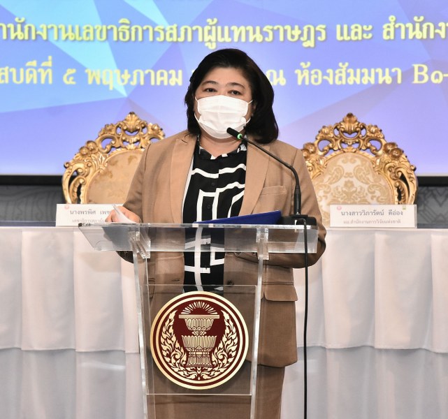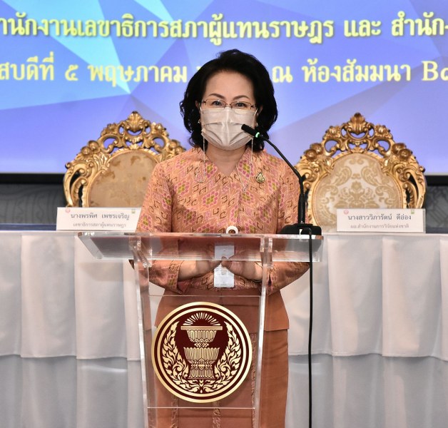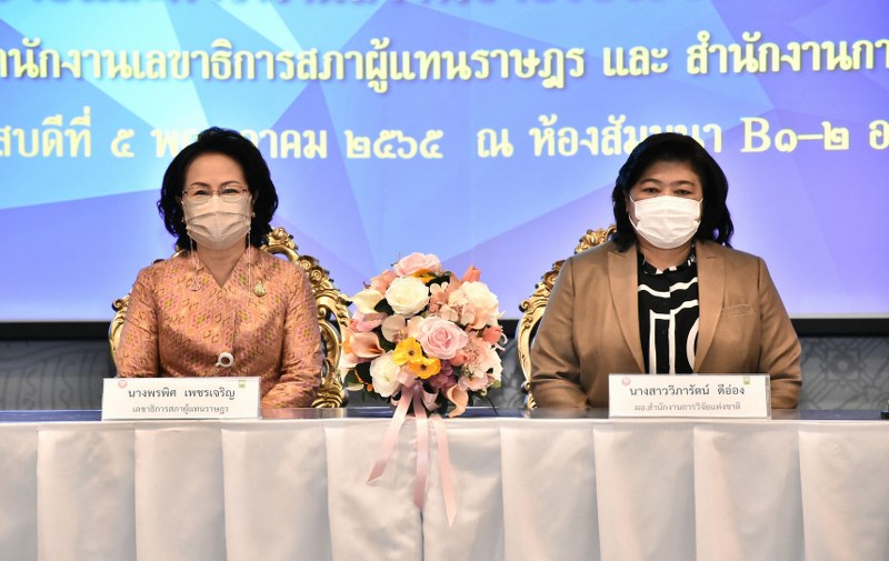 วันที่ 5 พฤษภาคม 2565 สำนักงานเลขาธิการสภาผู้แทนราษฎร (สผ.) MOU กับ สำนักงานการวิจัยแห่งชาติ (วช.) กระทรวงการอุดมศึกษา วิทยาศาสตร์ วิจัยและนวัตกรรม (อว.) เพื่อให้เกิดประโยชน์สูงสุดของการขับเคลื่อนผลงานวิจัยไปสู่การใช้ประโยชน์ในกระบวนการนิติบัญญัติ โดยมี นางพรพิศ เพชรเจริญ เลขาธิการสภาผู้แทนราษฎร กับ ดร.วิภารัตน์ ดีอ่อง ผู้อำนวยการสำนักงานการวิจัยแห่งชาติ ลงนามบันทึกข้อตกลงความร่วมมือ “การส่งเสริมการวิจัยและการนำผลงานวิจัยไปใช้ประโยชน์ในกระบวนการนิติบัญญัติ” เพื่อเป็นกลไกการประสานความร่วมมือในการสนับสนุนการวิจัย และการขับเคลื่อนให้ผลงานวิจัยถูกนำไปใช้ประโยชน์ ในกระบวนการนิติบัญญัติของสภาผู้แทนราษฎร โดยมี นายคุณวุฒิ ตันตระกูล รองเลขาธิการสภาผู้แทนราษฎร และ นายสมปรารถนา สุขทวี รองผู้อำนวยการสำนักงานการวิจัยแห่งชาติ ร่วมลงนามเป็นสักขีพยาน ณ ห้องประชุม บี1–บี2 โซนซี อาคารรัฐสภา กรุงเทพมหานคร