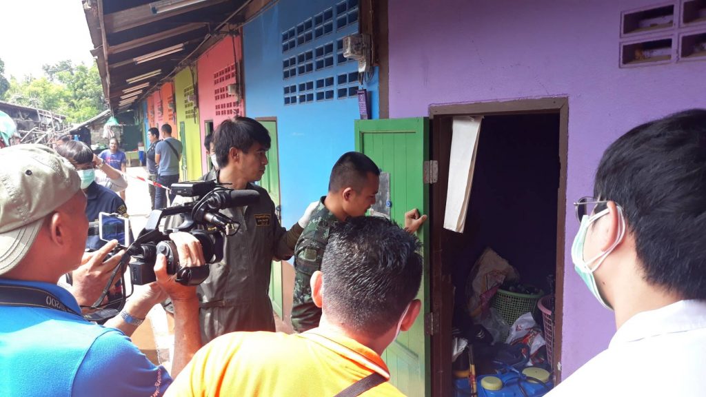 หลังรับแจ้งจึงได้เดินทางไปยังที่เกิดเหตุ พร้อมด้วย พล.ต.ต.นราเดช กลมทุกสิ่ง ผบก.ภ.จว.ปราจีนบุรี พ.ต.อ.พงศ์พันษ์ พลวงษ์ศรี ผกก.สภ.ประจันตคาม แพทย์เวรโรงพยาบาลประจันตคาม เจ้าหน้าที่หน่วยกู้ภัยร่วมกตัญญูจุดประจันตคาม เดินทางไปที่เกิดเหตุ เป็นห้องแถวให้เช่าชั้นเดียวจำนวน 13 ห้อง มีนางนิตยา นันแปร อายุ 51 ปี ผู้ใหญ่บ้านเป็นผู้ดูแล ห้องที่เกิดเหตุเป็นห้องเช่าเลขที่ 12/5 สภาพหน้าห้องกุญแจล็อคอยู่ ทางเจ้าหน้าที่ได้กลิ่นเน่าเหม็นอย่างรุนแรงออกมาจากภายในห้องพัก