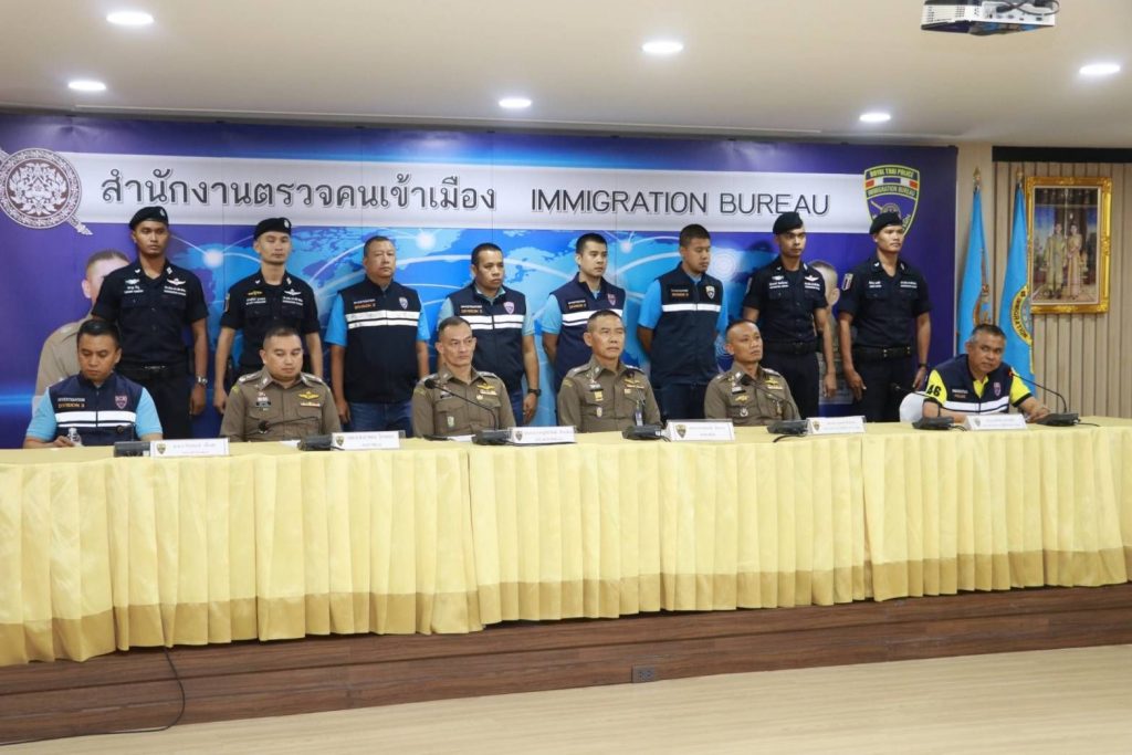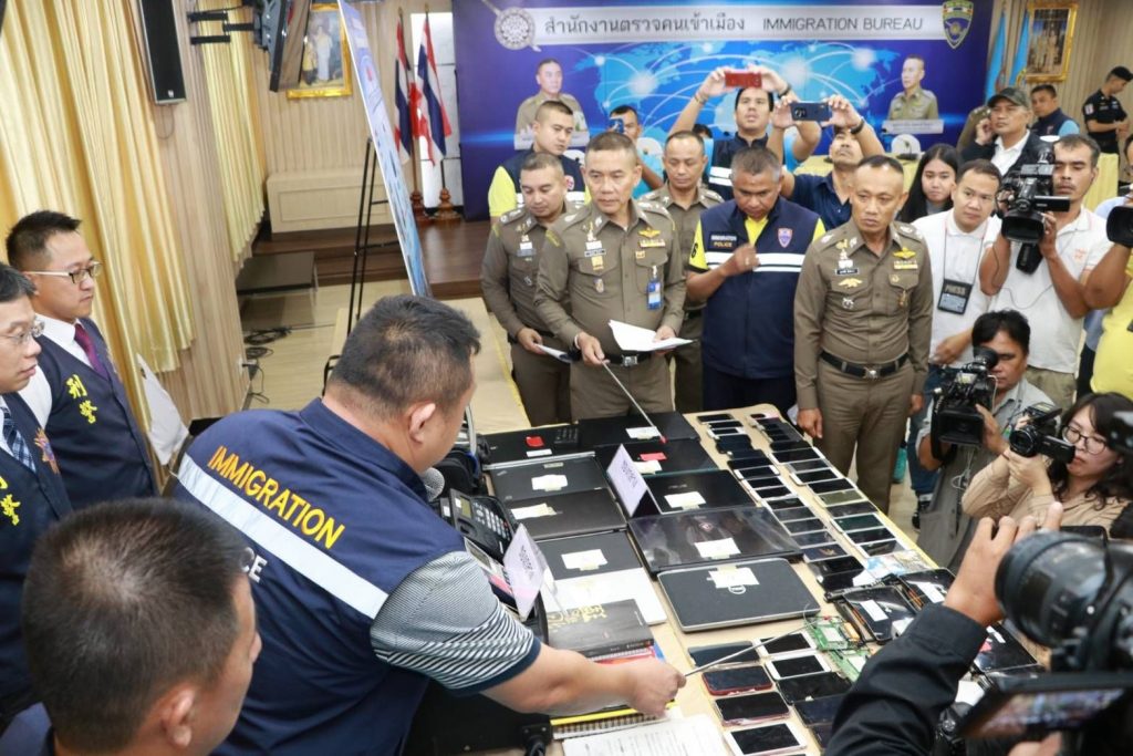 วันนี้ วันพฤหัสบดีที่ 15 ส.ค.62 เวลา 15.00 น.ณ ห้องมหาเมฆ ชั้น 4 อาคาร 1 สตม.(สวนพลู) กทม. : พล.ต.ท.สมพงษ์ ชิงดวง ผบช.สตม.พร้อมด้วย พล.ต.ต.ภาคภูมิภิภัทฒ์ สัจจพันธุ์ รอง ผบช.สตม.,พล.ต.ต.สุรพงษ์ ชัยจันทร์ รอง ผบช.ภ.7 ปฏิบัติราชการ รองผบช.สตม.,พล.ต.ต.อาชยน ไกรทอง ผบก.ตม 3,พล.ต.ต.พนัญชัย ชื่นใจธรรม ผบก.สส.สตม.,พ.ต.อ.ภาส สิริสุขะ รองผบก.ตม.3,พ.ต.อ.สถิตย์ พรมอุทัย รองผบก.สส.ภ.2,พ.ต.อ.ทินกร รังมาตย์ รองผบก.ปส.3,พ.ต.อ.มานะ นาคทั่ง รองผบก.ภ.จ.นครศรีธรรมราช,พ.ต.อ.อิทธิพล จันทร์ศรีบุตร รองผบก.สกส.บช.ปส. ปฏิบัติราชการ สตม.,พ.ต.อ.รัชธพงศ์ เตี้ยสุด ผกก.สส.บก.ตม.3,พ.ต.อ.สัมพันธ์ เหลืองสัจจกุล ผกก.ตม.จ.ชลบุรี,พ.ต.อ.ปรม พฤทธิกุล ผกก.ฝอ.บก.สส.ภ.4,พ.ต.อ.ณรงค์ ชนะภัยกุล ผกก.ฝ่ายกิจการต่างประเทศ บก.อก.บช.ส.,พ.ต.อ.ทิวา โสภาเจริญ ผกก.ฝอ.ศทก. ปฏิบัติราชการ สตม. ร่วมแถลงข่าวการจับกุมคนร้ายแก๊ง Call Center ไต้หวัน