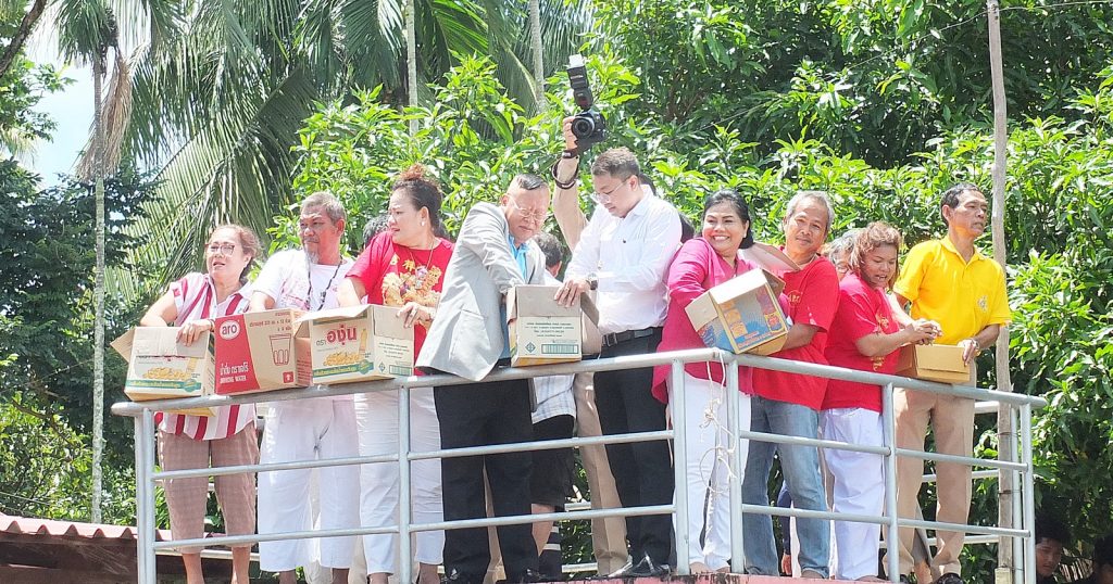เมื่อช่วงบ่ายของวันที่ 15 ส.ค. 62 นายประเสริฐ ลือชาธนานนท์ ผู้ว่าราชการ จ.ตราด ได้ให้เกียรติเป็นประธานในพิธีแจกข้าวสาร และโยนก้านกล้วย ที่ตัดเป็นท่อนเล็กๆ มีกระดาดเขียนตัวอักษรอยู่ด้านใน เพื่อให้ประชาชนที่เก็บได้ นำไปแลกสิ่งของหลากหลายชนิด ที่จัดเตรียมไว้ เพื่อแจกทานในการจัดงานประเพณี ทิ้งกระจาด ประจำปี 2562 ของ “ศาลเจ้าแม่ทับทิม” หรือศาลเจ้าเกาะช้าง องค์ก๋ง 108 บ้านด่านใหม่ ต.เกาะช้าง อ.เกาะช้าง จ.ตราด มีประชาชนมารอรับการแจกทานในครั้งนี้จำนวนมากกว่า 400 คน โดยมี นายทศพล สินยบุตร นายอำเภอเกาะช้าง-ผู้นำชุมชน-ผู้มีจิตศรัทธา-คณะกรรมการศาลฯร่วมในพิธี