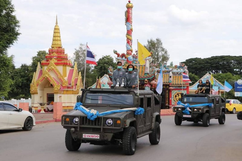 ซึ่งได้แห่ไปตามถนนสายต่างๆ ภายในเขตเทศบาลเมืองเลยเพื่อให้ประชาชนในเขตเทศบาลเมืองเลย ได้ร่วมแสดงความยินดีกับนักกีฬาหญิงทั้ง 2 คน ที่ได้สร้างชื่อเสียงโด่งดังระดับเอเชียมาให้กับพี่น้องชาวจังหวัดเลย จากหน้าเทศบาลเมืองเลยผ่านอาชีวศึกษาเลย เลี้ยวซ้ายเข้าสู่ถนนชุมสาย ผ่านวงเวียนน้ำพุ เข้าสู่ถนนสถลเชียงคาน เลี้ยวซ้ายไฟแดง ส.ทวีภัณฑ์ เข้าสู่ถนนร่วมใจ เลี้ยวซ้ายเข้าสู่ถนนมลิวรรณ ยูเทิร์นผ่านหน้าโรงเรียนเมืองเลย ผ่านแขวงการทางจังหวัดเลย มุ่งหน้าเข้าสู่โรงเรียนเทศบาล 5 บ้านหนองผักก้าม เพื่อทำพิธีแสดงความยินดีแก่นักกีฬา โดยมี นายดิษพล บุตรดีวงศ์ ท้องถิ่นจังหวัดเลย นายทัศนัย มงคลวัจน์นายกสมาคมกีฬาแห่งจังหวัดเลย ร่วมร่วมแสดงความยินดี โดยทำพิธีเลี้ยงต้อนรับและมอบเงินรางวัลให้เป็นขวัญกำลังใจแก่นักกีฬา ที่จะต้องเก็บตัวฝึกซ้อมไปแข่งขันในระดับโลก อยู่ที่อาคารอเนกประสงค์ 1 โรงเรียนเทศบาล 5 บ้านหนองผักก้าม เทศบาลเมืองเลย โดยมีผู้บริหารโรงเรียนเทศบาล 5 บ้านหนองผักก้าม เทศบาลเมืองเลย นายสุชาติ อาจศัตรู เป็นผู้อำนวยการโรงเรียนเทศบาล 5 บ้านหนองผักก้าม นายนราธป บุญมา รอง ผอ.โรงเรียนเทศบาล 5 บ้านหนองผักก้าม และนางมนพร ปุณยพงศ์ รอง ผอ.โรงเรียนเทศบาล 5 บ้านหนองผักก้าม และผู้ฝึกสอนนักกีฬา หรือโค้ช ได้แก่ นายทรงศักดิ์ ผาคำ กับนายกสิณ ตันปัน จัดงานแสดงความยินดีแก่นักกีฬาอย่างยิ่งใหญ่