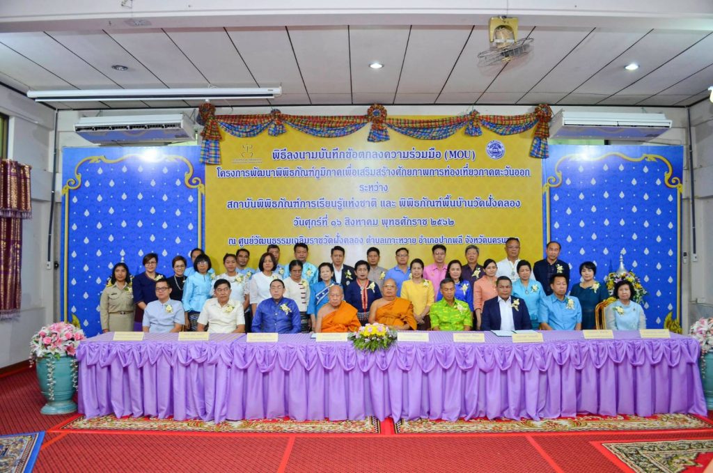 ที่ศาลาเฉลิมพระเกียรติวัดฝั่งคลอง ตำบลเกาะหวาย อำเภอปากพลี จังหวัดนครนายก นายณัฐพงศ์ ศิริชนะ ผู้ว่าราชการจังหวัดนครนายก ได้เป็นประธานฝ่ายฆราวาส พระราชพรมคุณ เจ้าคณะจังหวัดนครนายก เป็นประธานฝ่ายสงฆ์ พร้อมด้วยนายราเมศ พรหมเย็น ผู้อำนวยการสถาบันพิพิธภัณฑ์การเรียนรู้แห่งชาติ (มิเซียมสยาม) และส่วนที่เกี่ยวข้อง ได้ร่วมลงนามบันทึกข้องตกลงความร่วมมือกับพิพิธภัณฑ์พื้นบ้านวัดฝั่งคลอง เพื่อร่วมกันยกระดับต้นแบบพิพิธภัณฑ์ในระดับภูมิภาคและท้องถิ่น ให้เป็นแหล่งท่องเที่ยวเชิงพิพิธภัณฑ์ทางด้านประวัติศาสตร์ของจังหวัด ตามโครงการพัฒนาพิพิธภัณฑ์ภูมิภาคเพื่อเสริมสร้างศักยภาพการท่องเที่ยวภาคตะวันออก ที่มุ่งเน้นให้เกิดกระบวนการเรียนรู้ ทดลองทำและค้นพบด้วยตัวเอง พร้อมเผยแพร่องค์ความรู้ด้านการบริหารจัดการพิพิธภัณฑ์ที่มีอยู่ทั่วประเทศ ให้เป็นแหล่งเรียนรู้ที่สมบูรณ์ สำหรับพิพิธภัณฑ์พื้นบ้านวัดฝั่งคลอง ซึ่งเป็นชุมชนไทยพวนเก่าแก่ เป็นแหล่งท่องเที่ยวเชิงประวัติศาสตร์วัฒนธรรม ที่จะช่วยเพิ่มศักยภาพด้านการท่องเที่ยวและสร้างรายได้ให้แก่จังหวัด และยกระดับคุณภาพชีวิตของคนในชุมชนให้มีความเป็นอยู่ที่ดีขึ้น ซึ่งสอดคล้องกับแผนยุทธศาสตร์ชาติ ตามนโยบายภาครัฐ ในการอนุรักษ์ ฟื้นฟูมรดกทางวัฒนธรรมและรักษาภูมิปัญญาท้องถิ่นให้คงอยู่ตลอดไป