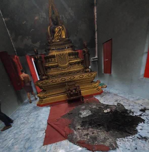 ลพบุรี – ลพบุรีชายวัย 35 ปี แอบพังประตูโบสถ์บุกเข้าไปกลางคืน หลังจากนั้นได้เกิดไฟไหม้อยู่ที่พรหมหน้าพระประธาน หาทางออกไม่ได้นอนสำลักควันจนหมดสติ จังหวะที่พระลูกวัดเดินผ่านมาเห็นมีไฟไหม้เรียกชาวบ้าน มาช่วยกันเปิดประตูเข้าไปดู ช่วยเหลือส่งโรงพยาบาล คาดเป็นคนร้ายแอบเข้ามาขโมยพระพุทธรูป แต่กรรมตามทัน