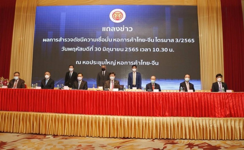 วันที่ 30 มิ.ย.65 เวลา 10.00 น. ณ หอประชุมใหญ่ หอการค้าไทย-จีน ชั้น 9 อาคาร ไทย ซี.ซี.ถนนสาทรใต้ : นายณรงค์ศักดิ์ พุทธพรมงคล ประธานกรรมการ หอการค้าไทย-จีน เปิดเผยว่า หอการค้าไทย-จีน และคณะเศรษฐศาสตร์ จุฬาลงกรณ์มหาวิทยาลัย ได้ทำการสำรวจดัชนีความเชื่อมั่น จากคณะกรรมการกิตติมศักดิ์ คณะกรรมการบริหาร และสมาชิกหอการค้า ไทยจีน และประธาน ผู้บริหาร กรรมการสมาพันธ์หอการค้าไทยจีน และกลุ่มนักธุรกิจรุ่นใหม่หอการค้าไทยจีน จำนวน 325 คน ระหว่างวันที่ 16 ถึง 24 มิถุนายน 2565 เพื่อคาดการณ์ทิศทางเศรษฐกิจในไตรมาสที่ 3 ของปี 2565 ได้ดังนี้