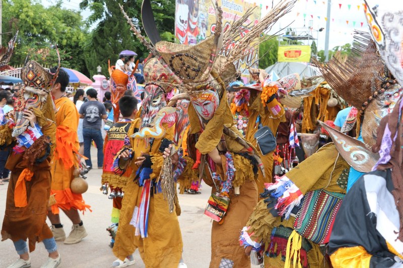 ประเพณีผีตาโขน ถือเป็นส่วนหนึ่งในงานบุญประเพณีใหญ่ หรือที่เรียกว่า “งานบุญหลวง” หรือ “บุญผะเหวด” ตรงกับเดือน 7 จัดขึ้น ณ อำเภอด่านซ้าย จังหวัดเลย และจัดเป็นการละเล่นที่ถือเป็นประเพณีทุกปี เกี่ยวโยงกับงานบุญพระเวสหรือเทศน์มหาชาติประจำปีกับพระธาตุศรีสองรัก ปูชนียสถานสำคัญของชาวด่านซ้าย กล่าวกันว่า…การแห่ผีตาโขนเกิดขึ้นเมื่อครั้งที่พระเวสสันดรและนางมัทรีจะเดินทางออกจากป่า กลับสู่เมืองบรรดาผีป่าหลายตนและสัตว์นานาชนิดอาลัยรักจึงพาแห่แหนแฝงตัวแฝงตน มากับชาวบ้านเพื่อมาส่งทั้งสองพระองค์กลับเมือง เรียกกันว่า “ผีตามคน” หรือ “ผีตาขน” จนกลายมาเป็น “ผีตาโขน” อย่างในปัจจุบัน