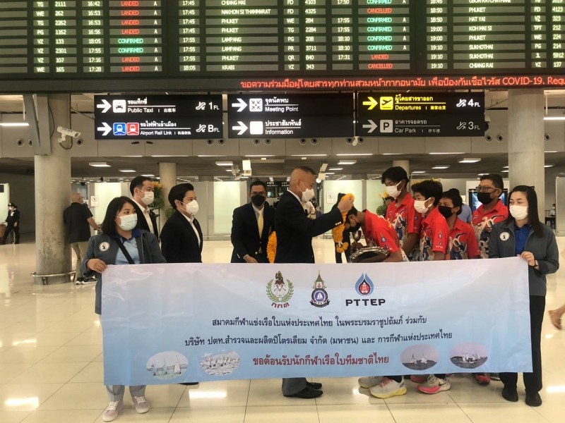 เมื่อวันที่ 9 กรกฎาคม 2565 เวลา 15.30 น. : พลเรือเอก สมชาย ณ บางช้าง อุปนายกสมาคมกีฬาแข่งเรือใบแห่งประเทศไทย ในพระบรมราชูปถัมภ์ เป็นผู้แทนนายกสมาคมกีฬาแข่งเรือใบแห่งประเทศไทยฯ พร้อมด้วย นายวรศักดิ์ ขันติบัณฑิต ผู้อำนวยการกองพัฒนากีฬาเป็นเลิศ ผู้แทนการกีฬาแห่งประเทศไทย และ นางสาวบุษบรรณ จีนเจริญ ผู้จัดการอาวุโส ฝ่ายกิจกรรมเพื่อสังคม บริษัท ปตท.สำรวจและผลิตปิโตรเลียม จำกัด (มหาชน) หรือ ปตท.สผ. ร่วมให้การต้อนรับทีมนักแล่นใบไทยที่เข้าร่วมการแข่งขันเรือใบ รายการ The 2022 Arkas Optimist World Championship ซึ่งจัดขึ้นที่เมืองโบดรัม ประเทศตุรกี โดยในรายการดังกล่าว