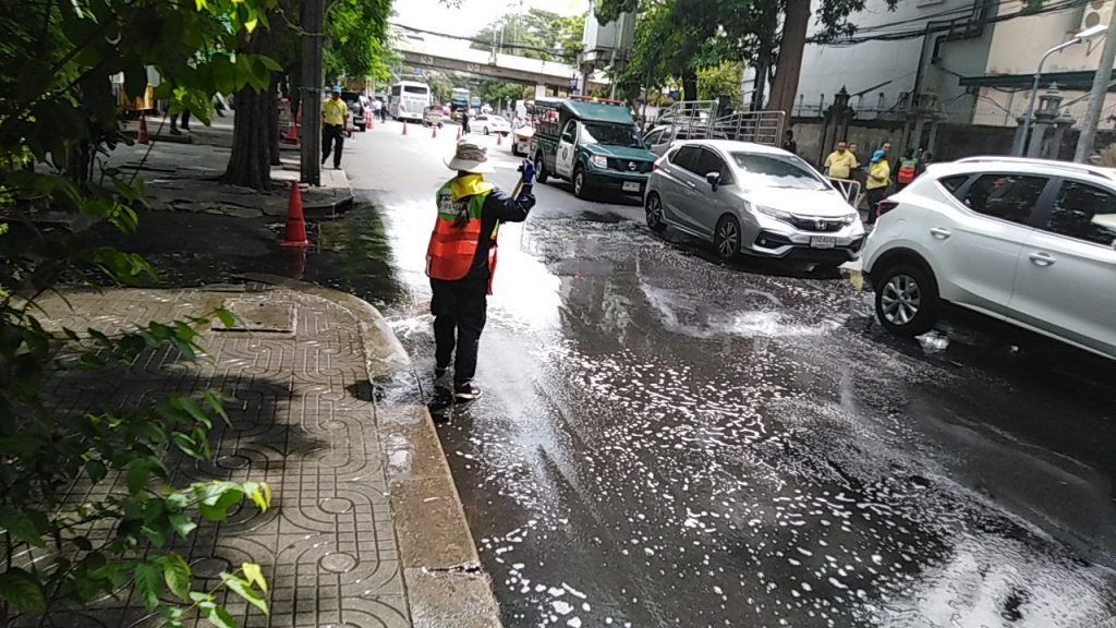 วันเสาร์ที่ 17 สิงหาคม 2562 เวลา 10:00 น. นายสุริยชัย รวิวรรณ “ผู้อำนวยการเขตพระนคร” มอบหมายให้ นายเจษฎา ประภาสะวัต “หัวหน้าฝ่ายเทศกิจ” สั่งการให้ นายคณิต ชุมช่วย “หัวหน้างานตรวจและบังคับการฝ่ายเทศกิจ” นำกำลัง จนท.ฝ่ายเทศกิจฯ จนท.ฝ่ายรักษาฯ (เขตพระนคร) ร่วมกับ จนท.ทหาร จนท.ตำรวจ ร่วมทำกิจกรรมจิตอาสา “เราทำความดี ด้วยหัวใจ” ทำความสะอาด ฉีดน้ำล้างพื้นผิวถนน และ ทางเดินบนฟุตบาท บริเวณใต้สะพานพระปิ่นเกล้า ( ฝั่งพระนคร ) ถนนพระอาทิตย์ เขตพระนคร กทม.