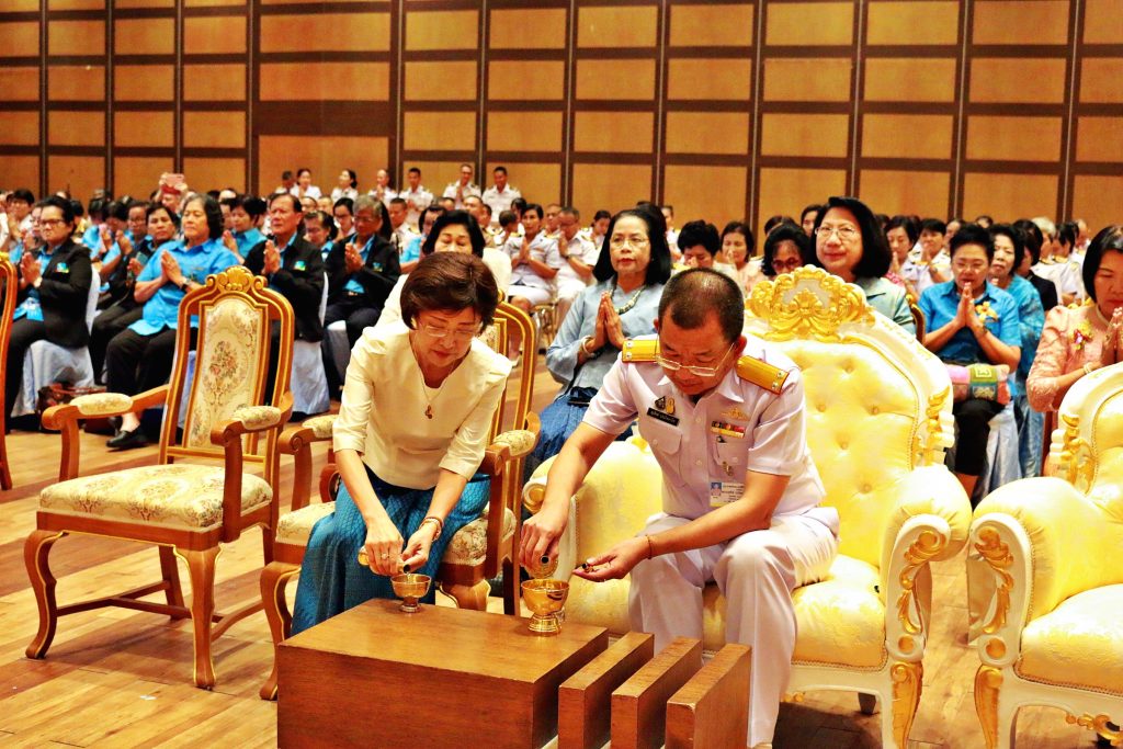 จากนั้นได้ประกอบพิธีทางศาสนา โดยได้นิมนต์พระสงฆ์ จำนวน 10 รูป มาสวดเจริญพระพุทธมนต์ ประพรมน้ำพระพุทธมนต์ และฉันภัตราหารเพล เพื่อความเป็นสิริมงคลแก่หน่วยงาน และเพื่ออุทิศส่วนบุญส่วนกุศล ให้แก่ข้าราชการ ทหาร และลูกจ้างในสังกัด ตลอดจน บุคคลโดยทั่วไปที่เสียชีวิตขณะเข้ารับการรักษาพยาบาล ณ รพ.สมเด็จพระนางเจ้าสิริกิติ์ กรมแพทย์ทหารเรือ แห่งนี้