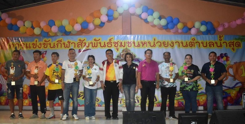 สำหรับวัตถุประสงค์ในการจัดการแข่งขันกีฬาชุมชนเพื่อเสริมสร้างความสมัครสมานสามัคคี ระหว่างองค์กร หน่วยงานต่างๆทั้งภาครัฐ ภาคเอกชน และภาคประชาชน ภายในตำบลน้ำสุด และส่งเสริมให้บุคลากรของหน่วยงานและผู้นำองค์กร ขุมชน ออกกำลังกายเป็นแบบอย่างที่ดีแก่ประชาชนและเพื่อเสริมสร้างสุขภาพพลามัยให้สมบูรณ์แข็งแรง โดยมีการแข่งขันกีฬาประเภทต่างๆดังนี้ ฟุตบอล 7 คน วอลเล่ย์บอล(ผสมชายและหญิง) ตะกร้อ เปตอง มีทีมเข้าแข่งขัน 4 ทีม ประกอบไปด้วย