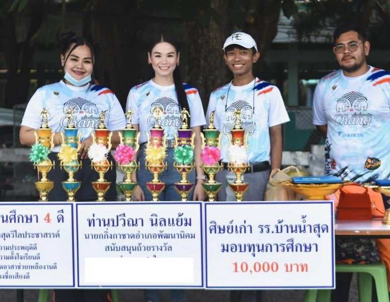 ในการนี้นางปวีณา นิลแย้ม (ที่ปรึกษารัฐมนตรีช่วยว่าการกระทรวงคมนาคมและนายกกิ่งกาชาดอำเภอพัฒนานิคม) ได้สนับสนุนถ้วยรางวัลในการแข่งขันทั้งหมดทุกรายการ ชมรมศิษย์เก่า รร.บ้านน้ำสุด มอบทุนการศึกษา จำนวน 10,000 บาท ให้แก่ นักเรียน รร.น้ำสุดวิไลประชาสรรค์ ทีมฅนเมืองย่า ทีม Southern Man และทีมคอแห้ง FC ได้ร่วมกันมอบอุปกรณ์กีฬาและทุนการศึกษาแก่ รร.น้ำสุดวิไลประชาสรรค์ในโอกาสเดียวกันนี้อีกด้วย ซึ่งการจัดการแข่งขันกีฬาสัมพันธ์ชุมชนในครั้งนี้ถือเป็นการจัดการแข่งขันครั้งแรกในรอบ 30 ปี