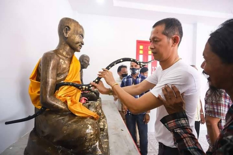 และเมื่อยกรูปหล่อ 3 พระเกจิฯ เข้าประดิษฐานในศาลาหลังใหม่เรียบร้อยแล้ว ฝนที่ตกลงมานั้นกลับหยุดลงอย่างกระทันหัน ทำให้ประชาชนที่มาร่วมงานต่างพูดถึงความศักดิ์สิทธิ์ของพระเกจิอาจารย์ทั้ง 3 รูป ที่ดลบันดาลให้เม็ดฝนโปรยปรายลงมาเหมือนเป็นการประพรมน้ำพระพุทธมนต์