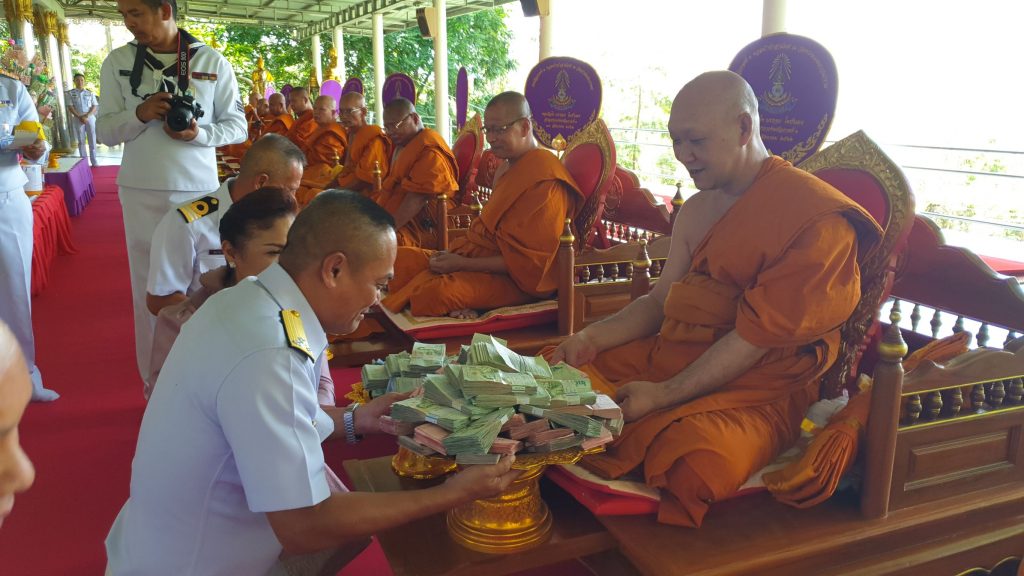 ทัพเรือภาคที่ 1 นำข้าราชการทหาร และครอบครัวร่วมผู้มีจิตศรัทธาทอดผ้าป่าสามัคคีมหากุศลได้ปัจจัยกว่า 2 ล้านบาทถวาย 10 วัด ปรากฏแสงจากฟากฟ้าพาดลงมาที่เศียรพระใหญ่อย่างน่าอัศจรรย์