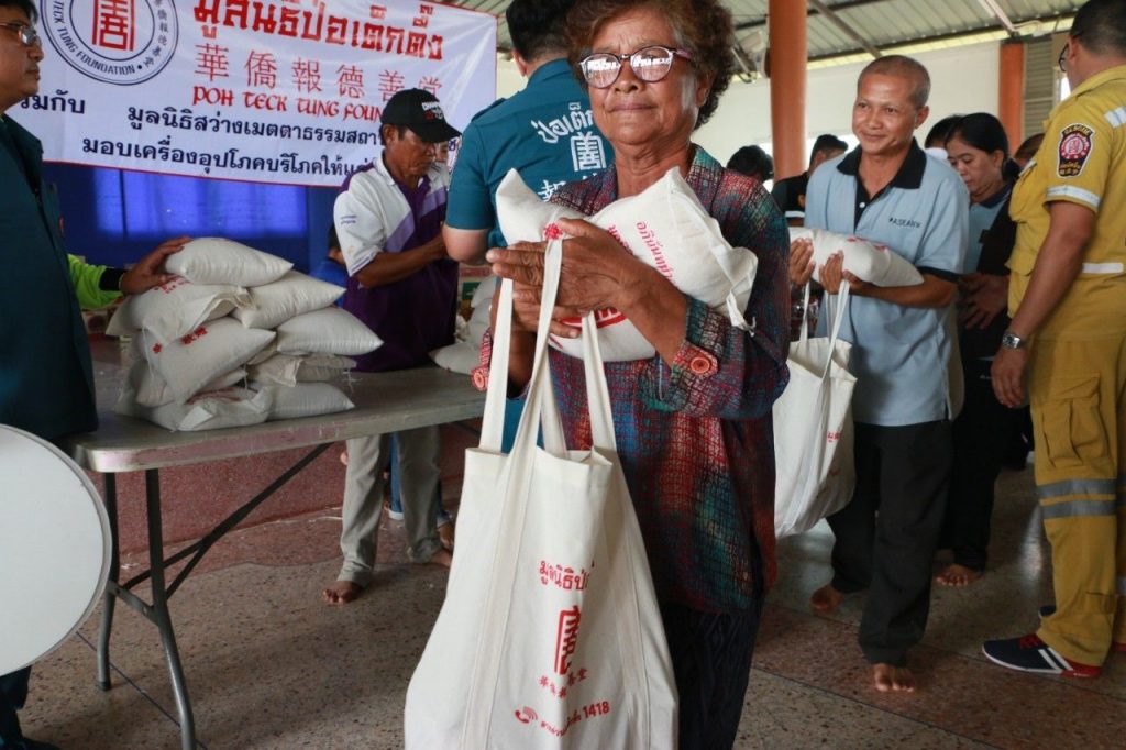 วันนี้ วันเสาร์ที่ 24 สิงหาคม 2562 : มูลนิธิป่อเต็กตึ๊ง นำโดย นายจารุรัตน์ คุณัตถานนท์ กรรมการและรองเลขาธิการ ร่วมกับมูลนิธิสว่างเมตตาธรรมสถาน มอบเครื่องอุปโภคบริโภค ในโครงการสงเคราะห์ผู้ประสบภัยแล้ง รวมจำนวน 1,000 ชุด แก่ประชาชนในพื้นที่ อ.ปักธงชัย อ.คง และ อ.โนนดินแดง จ.นครราชสีมา โดยมีหน่วยงานราชการร่วมในพิธี