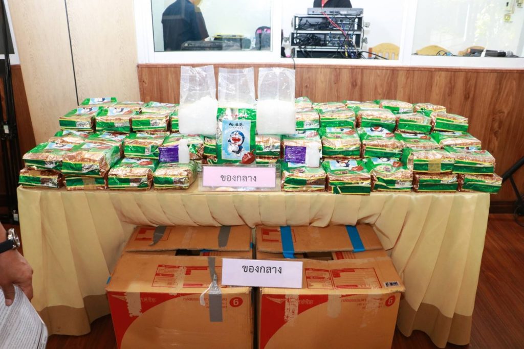 ต่อมาเวลาประมาณ 21.30 น. ของวันที่ 24 ส.ค.62 ได้พบรถยนต์เป้าหมายขับขี่มาตามถนนเลี่ยงเมืองจังหวัดนนทบุรี มุ่งหน้าถนนรัตนาธิเบศร์ เข้ากรุงเทพฯ จนกระทั่งเวลาประมาณ 22.30 น. ขณะที่รถยนต์เป้าหมาย ได้ไปจอดบริเวณลานจอดรถหน้าห้องเช่าไม่มีเลขที่ ภายในซอยสุเหร่าคลองหนึ่ง แยก 15 แขวงบางชัน เขตคลองสามวา กรุงเทพฯ ต่อมาเวลาประมาณ 00.30 น. ของวันที่ 25 ส.ค.62 ได้มีนายเอกวัฒน์ หรือ นุ้ย ขับขี่รถยนต์ส่วนบุคคล ยี่ห้อ โตโยต้า รุ่น วีออส สีขาว ทะเบียน ฆฎ 4556 กทม. และ นายไชยราช หรือ ชัย สุดาวงค์ เป็นผู้ขับขี่รถยนต์นั่งส่วนบุคคล ยี่ห้อ ฮอนด้า รุ่น แอคคอต สีขาว ทะเบียน ขม 137๘ นครราชสีมา ทราบชื่อภายหลัง จากนั้นทั้ง 2 คน ได้ช่วยกันยกกล่องกระดาษขนาดใหญ่จำนวน 1 กล่อง จากหลังรถยนต์เป้าหมายมาใส่ในรถยนต์นั่งส่วนบุคคล ยี่ห้อ โตโยต้า รุ่น วีออส สีขาว ทะเบียน ฆฎ 4556 กทม. ส่วนนายไชยราชฯ ยืนดูลักษณะเหมือนเป็นผู้ควบคุมสั่งการ เจ้าหน้าที่ชุดจับกุมจึงได้แสดงตัวเป็นเจ้าหน้าที่ตำรวจขอตรวจค้นรถยนต์ ทั้ง 3 คัน ผลปรากฏว่า พบกล่องขนาดใหญ่จำนวน 1 กล่อง อยู่ท้ายรถยนต์กระบะ ยี่ห้อ มาสด้า รุ่น BT50 สีฟ้า ทะเบียน 1 ฒฐ 5789 กทม. และกล่องขนาดใหญ่จำนวน 1 กล่อง อยู่บริเวณที่นั่งผู้โดยสารหลังคนขับรถยนต์ ส่วนบุคคล ยี่ห้อ โตโยต้า รุ่น วีออส สีขาว ทะเบียน ฆฎ 4556 กทม. เมื่อเปิดกล่องทั้ง 2 กล่อง พบถุงฟอยด์ ลักษณะคล้ายถุงบรรจุชาดอกทานตะวัน ปรากฏยี่ห้อ XIANGRIKUI และอีกด้านหนึ่งเป็นรูปการ์ตูนโดราเอม่อน จำนวน 105 ถุง จึงได้สุ่มเปิดถุงดังกล่าวจำนวน 2 ถุง พบเป็นยาเสพติดให้โทษประเภท 1 (ไอซ์) น้ำหนักถุงละ 1 กิโลกรัม รวมน้ำหนักทั้งสิ้น 105 กิโลกรัม จึงได้จับกุมตัวผู้ต้องหาทั้ง 2 คน พร้อมของกลาง ส่งพนักงานสอบสวนดำเนินคดีตามกฎหมายต่อไป