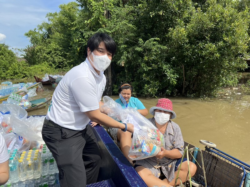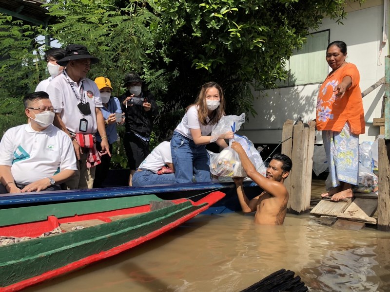 โดยมี คุณวัชระ กระแสร์ฉัตร์ นายอำเภอบางปะอิน คุณเอนกพงศ์ รื่นพิทักษ์ ผู้ใหญ่บ้าน หมู่ที่ 2 และคุณนฤชา รื่นพิทักษ์ ผู้ใหญ่บ้าน หมู่ที่ 3 ต.บ้านพลับ อ.บางปะอิน จ.พระนครศรีอยุธยา ให้การต้อนรับ โดยหมู่บ้านดังกล่าว เป็นชุมชนริมเจ้าพระยาที่ถูกน้ำท่วมนานกว่า 2 เดือน ซึ่งขณะนี้น้ำท่วมเต็มพื้นที่แล้ว