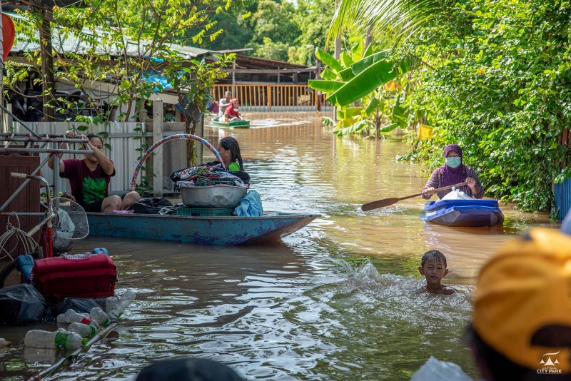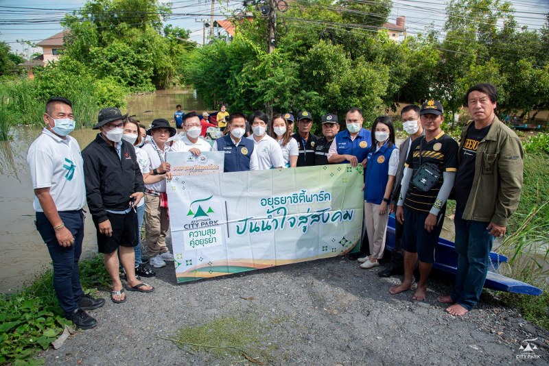 ศูนย์การค้าอยุธยาซิตี้พาร์ค ร่วมกับ สมาคมผู้สื่อข่าวหนังสือพิมพ์ โทรทัศน์ พระนครศรีอยุธยา นำโดยผู้บริหารศูนย์การค้าฯ คุณปพน ด่านชัยวิโรจน์, คุณปภาวี ด่านชัยวิโรจน์ ผู้ช่วยประธานเจ้าหน้าที่บริหาร, ดร.สมพล รัชตพิมลชัย ประธานเจ้าหน้าที่บริหารการตลาด, คณะผู้บริหาร, เจ้าหน้าที่ศูนย์การค้าอยุธยาซิตี้พาร์ค, พร้อมด้วย คุณสัมฤทธิ์ เจียมเจริญพรกุล อุปนายกสมาคมผู้สื่อข่าวฯ, คุณเดชา อุ่นขาว เลขาธิการสมาคมฯ, และสื่อมวลชนสมาชิกสมาคมผู้สื่อข่าวหนังสือพิมพ์ โทรทัศน์ พระนครศรีอยุธยา เดินทางลงพื้นที่หมู่ที่ 2 และหมู่ที่ 3 ต.บ้านพลับ อ.บางปะอิน จ.พระนครศรีอยุธยา เพื่อมอบถุงยังชีพจากโครงการเปิดรับบริจาคช่วยเหลือน้ำท่วม “ชาวอยุธยา ไม่ทอดทิ้งกัน ร่วมปันน้ำใจ ช่วยผู้ประสบภัยน้ำท่วม” แก่ประชาชนที่ประสบอุทกภัยจำนวน 130 ชุด