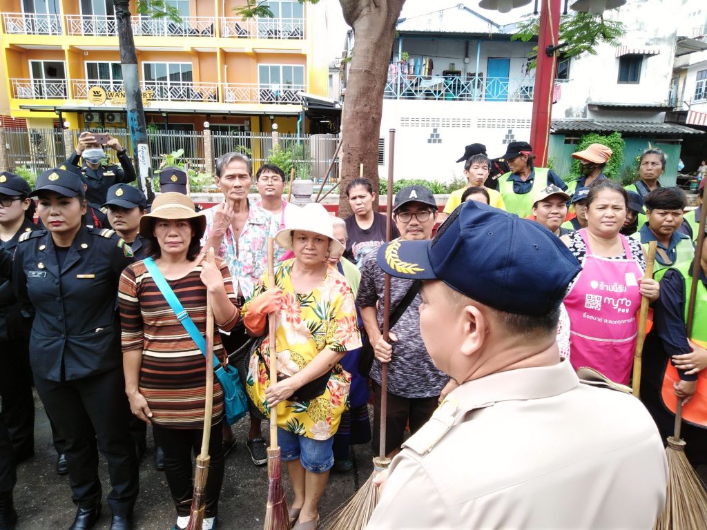 โดยวันนี้ นายเจษฎา ประภาสะวัต “หัวหน้าฝ่ายเทศกิจ” นายคณิต ชุมช่วย “หัวหน้างานตรวจและบังคับการฝ่ายเทศกิจ” นำกำลัง จนท.ฝ่ายเทศกิจฯ จนท.ฝ่ายรักษาฯ จนท.ฝ่ายโยธาฯ “เขตพระนคร” ร่วมกับ จนท.ตำรวจฯ จนท.ทหารฯ ร่วมกันทำการตรวจสอบความเป็นระเบียบเรียบร้อย และ ทำการปรับปรุงภูมิทัศน์ ยกเก็บสิ่งของที่วางกีดขวางทางเดินในพื้นที่สาธารณะนำออก และ ทำการตัดแต่งกิ่งไม้ ใช้รถน้ำทำการฉีดล้างพื้นผิวถนน บริเวณชุมชน พร้อมกันนี้ ยังได้ทำการประชาสัมพันธ์ขอความร่วมมือแก่พี่น้องประชาชน พ่อค้า แม่ค้า ในชุมชนบ้านพานถม ให้จัดเตรียมเอกสารบัตรประชาชนเพื่อทำการลงทะเบียร ลงชื่อ ตรวจสอบว่ามีการตั้งร้านค้าอยู่บริเวณใด เพื่อนำมาประชุมวางแผนในส่วนที่เกี่ยวข้องเพื่อจะพัฒนาผลักดัน ตลาด ชุมชน แห่งนี้ให้เป็นเหล่งท่องเที่ยวเเหล่งเศรฐกิจแหล่งเรียนรู้ในอนาคตต่อไป โดยกิจกรรมวันนี้ต่างได้มีพี่น้องประชาชน พ่อค้า แม่ค้า ในชุมชนออกมาให้ความร่วมมือเป็นจำนวนมาก