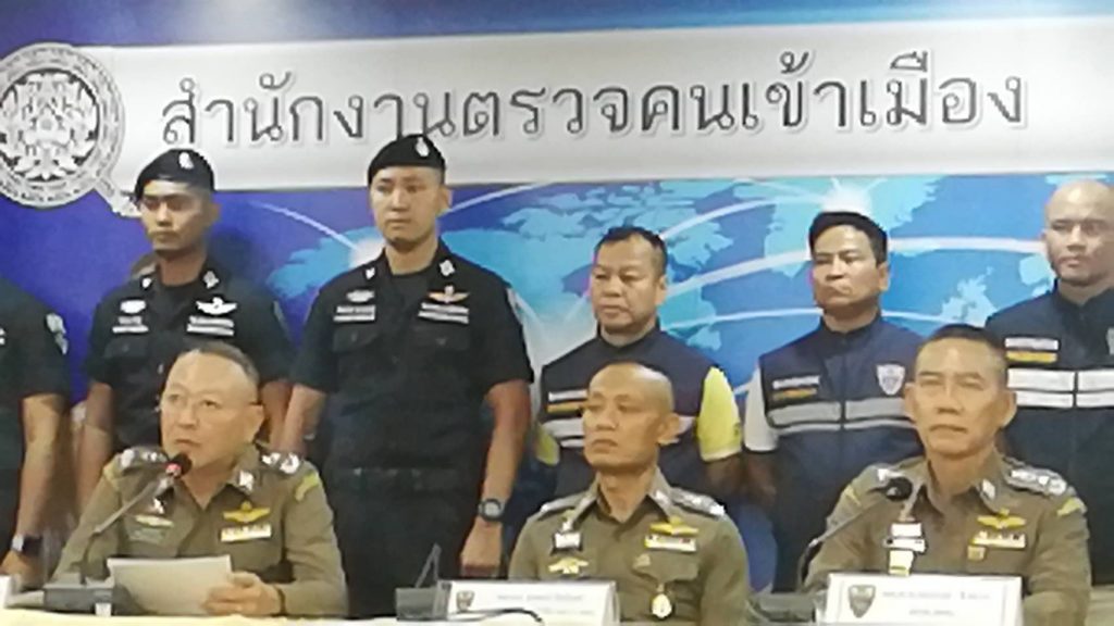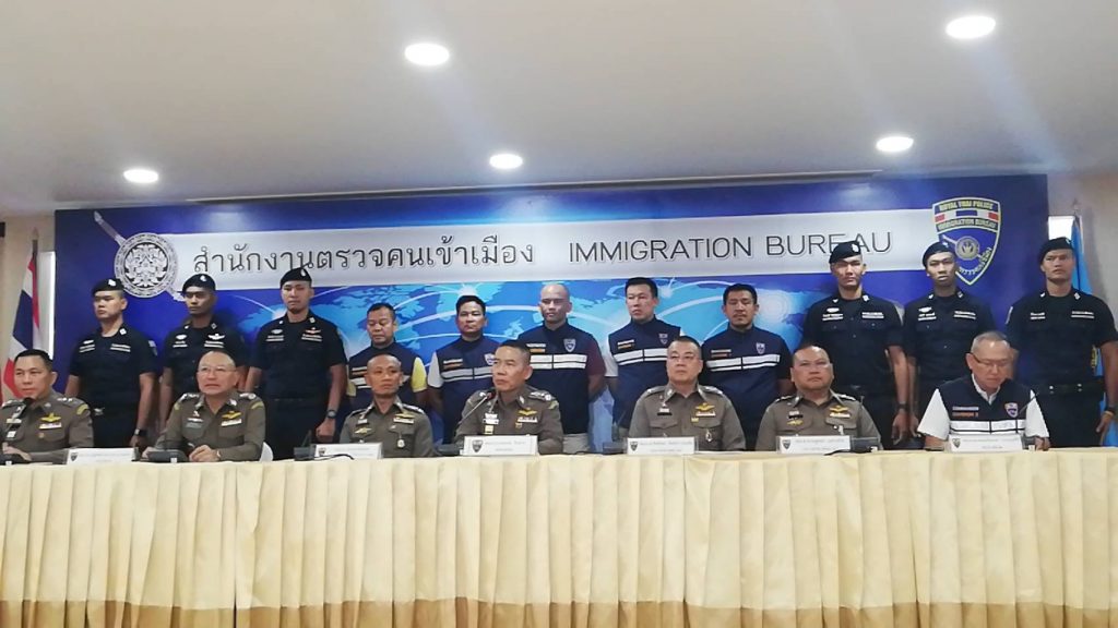 วันนี้ วันพุธที่ 28 ส.ค.62 เวลา 13.30 น.ณ ห้องประชุมชั้น 4 อาคาร 1 สตม.(สวนพลู) : พล.ต.ท.สมพงษ์ ชิงดวง ผบช.สตม. พร้อมด้วย พล.ต.ต.ภาคภูมิภิภัทฒ์ สัจจพันธุ์, พล.ต.ต.อิทธิพล อิทธิสารรณชัย, พล.ต.ต.ณฐพล แสวงกิจ รองผบช.สตม., พล.ต.ต.สุรพงษ์ ชัยจันทร์ รอง ผบช.ภ.7 ปฏิบัติราชการ รองผบช.สตม., พล.ต.ต.ปฏิพัทธ์ สุบรรณ ณ อยุธยา ผบก.ตม.1, พล.ต.ต.พฤทธิพงษ์ ประยูรศิริ ผบก.ตม.2, พ.ต.อ.เจนกมล คำนวล รองผบก. ตม.1 และ พ.ต.อ.ชัชวาลย์ ทิพย์พิชัย ผกก.สส.บก.ตม.1 พร้อมชุดสืบสวน ร่วมแถลงข่าวการจับกุม ดังนี้