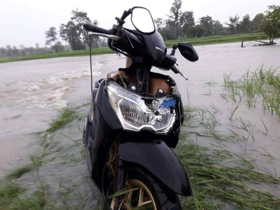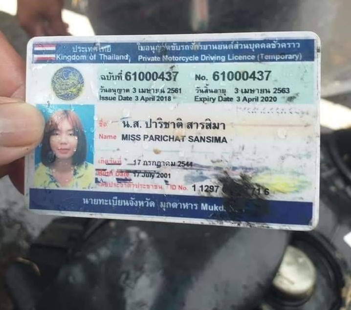 เบื้องต้นในที่เกิดเหตุพบรถจักรยานยนต์ยี่ห้อฮอนด้าสีดำ หมายเลขทะเบียน 1 กม 8861 มุกดาหาร จอดอยู่บริเวณถนนสายนาโพธิ์-ดงมัน ช่วงป่าพะยอม นายอ ห่างจากจุดถนนขาดประมาณ 500 เมตร ห่างออกไปพบแต่เพียงหมวกกันน็อค ตรวจสอบใต้เบาะรถ พกใบขับขี่ ระบุชื่อ นางสาวปาริชาติ สารสิมา อายุ 18 ปี เจ้าหน้าที่นำเรือท้องแบนเร่งระดมกำลังค้นหาผู้ประสบภัย อย่างต่อเนื่อง แต่ก็ยังไม่พบผู้ประสบภัย