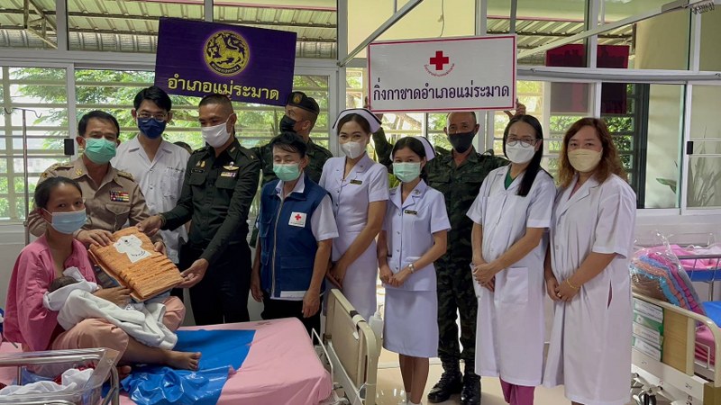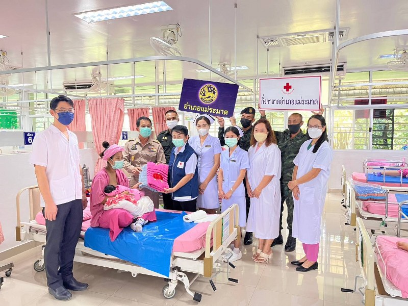 พร้อมกันนี้ นายอำเภอแม่ระมาด ชุดปฏิบัติการกิจการพลเรือนที่ 304 กองกำลังนเรศวร กิ่งกาชาดอำเภอแม่ระมาด แม่บ้านมหาดไทยอำเภอแม่ระมาด นำสิ่งของมอบให้แก่เด็กแรกเกิดซึ่งส่วนใหญ่เป็นกลุ่มชาติติพันธ์ในพื้นที่ชายแดนจังหวัดตาก และให้กำลังใจแก่แพทย์ พยาบาล ที่ให้การดูแลรักษา ตลอดจนคุณแม่และเด็กน้องๆ ที่น่ารัก จำนวน 4 ราย ณ โรงพยาบาลแม่ระมาดอำเภอแม่ระมาด จังหวัดตาก