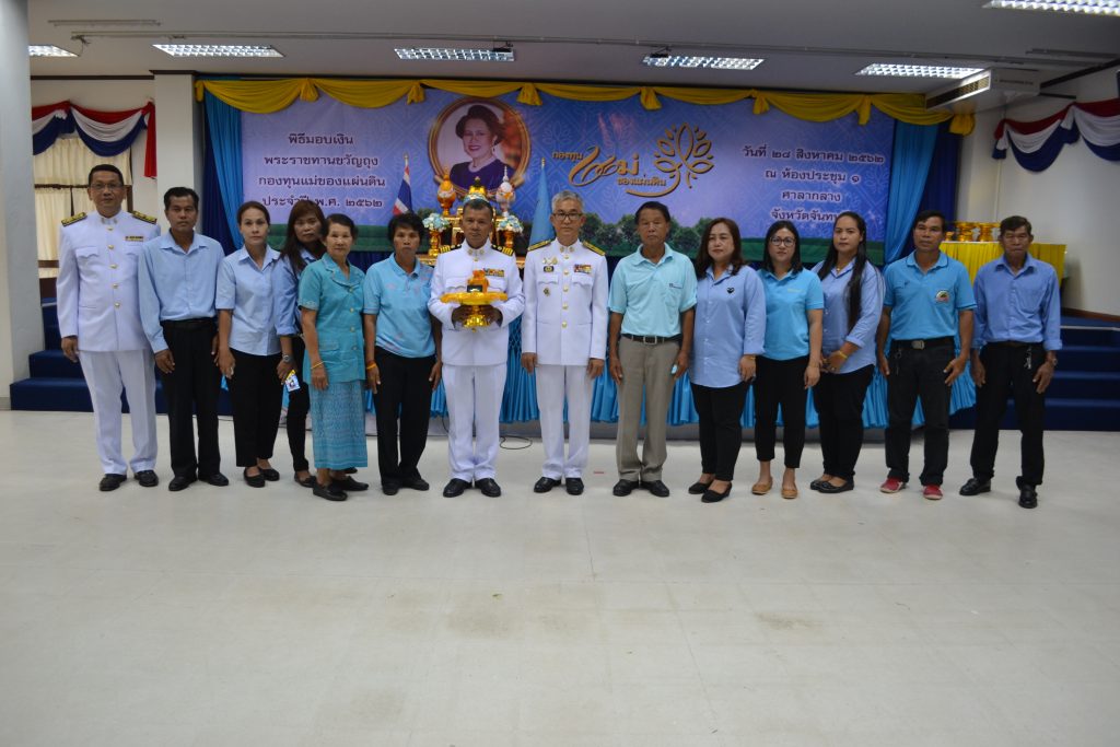 รับเงินพระราชทานขวัญถุงกองทุนแม่ของแผ่นดิน พร้อมเข็มตราสัญลักษณ์กองทุนแม่ของแผ่นดิน เพื่อเป็นทุนสำหรับการขับเคลื่อนงานกองทุนแม่ของแผ่นดินในจังหวัดจันทบุรี สืบสานปณิธานกองทุนแม่ของแผ่นดินในการสร้างความเข้มแข็ง ป้องกัน และแก้ไขปัญหายาเสพติดในชุมชน