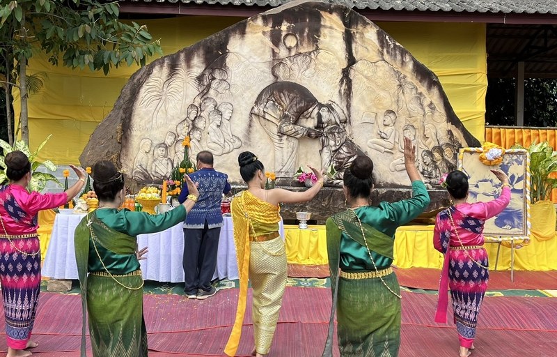 ขณะที่นายบรม จันทนิตย์ อายุ 82 ปี หลานชายของแม่เฒ่าตุ้ม กล่าวว่ารู้สึกตื้นตันใจจนพูดอะไรไม่ออก ครอบครัวตระกูลจันทนิตย์ขอขอบคุณ อบต.พระกลางทุ่ง และ สภาวัฒนธรรมจังหวัดนครพนม ที่ทำให้วันนี้เป็นวันสำคัญอีกวันหนึ่งของจังหวัดนครพนม ส่วน นายคมสิน ศรีมานะศักดิ์ ประธานสภาวัฒนธรรมจังหวัดนครพนม ได้อ่านบทกลอนที่เขียนขึ้นงานนี้โดยเฉพาะ โดยมีนักศึกษาจากมหาวิทยาราชภัฎสกลนครขับเสภาเทิดพระเกียรติ