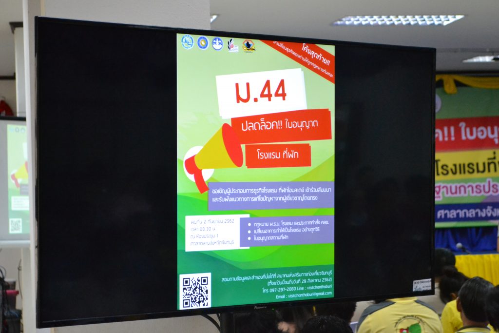 รวมทั้งพัฒนาธุรกิจที่พักของชุมชน โฮมสเตย์ ให้เกิดความเข้มแข็ง ลดความขัดแย้ง สร้างความเข้มแข็งในชุมชน กระตุ้นเศรษฐกิจ สร้างรายได้ ยกระดับคุณภาพชีวิตของประชาชน อย่างยั่งยืน ที่ผ่านมาในจังหวัดจันทบุรี มีผู้นำอาคารมาให้บริการแก่ประชาชนบ้าง ใช้บ้านเรือนที่อยู่อาศัยให้บริการในรูปแบบของโรงแรมตามแห่งท่องเที่ยวต่าง ๆ เพื่อหารายได้บ้าง ซึ่งกรณีเหล่านี้มีจำนวนหลายแห่งที่ยังไม่ได้รับอนุญาตให้ดำเนินการได้ถูกต้องตามกฎหมาย หน่วยงานและภาคเอกชนผู้เกี่ยวข้อง จึงได้จัดประชุมให้ความรู้ขึ้นในวันนี้ พร้อมทั้งมีหน่วยงานที่เกี่ยวข้องมาเปิดคลินิกให้คำปรึกษา ข้อคิดเห็น และข้อเสนอแนะให้เป็นไปเพื่อความสงบ เรียบร้อย และส่งเสริมภาพลักษณ์การท่องเที่ยวของจังหวัดจันทบุรี
