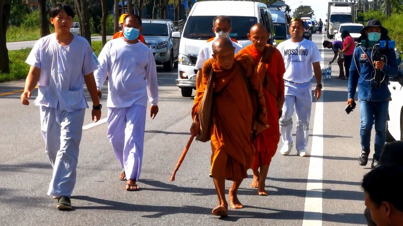 หลวงตาบุญชื่น’ พระธุดงค์สายป่า เริ่มออกเดินจาริกธุดงค์แสวงบุญเท้าเปล่าจาก อ.บางสะพาน เข้าสู่ อ.ทับสะแก ปลายทางบ้านเกิดที่ จ.นครพนม ใช้เวลา 5 เดือน ผ่าน 24 จังหวัด ระยะทาง 3,415 กิโลเมตร