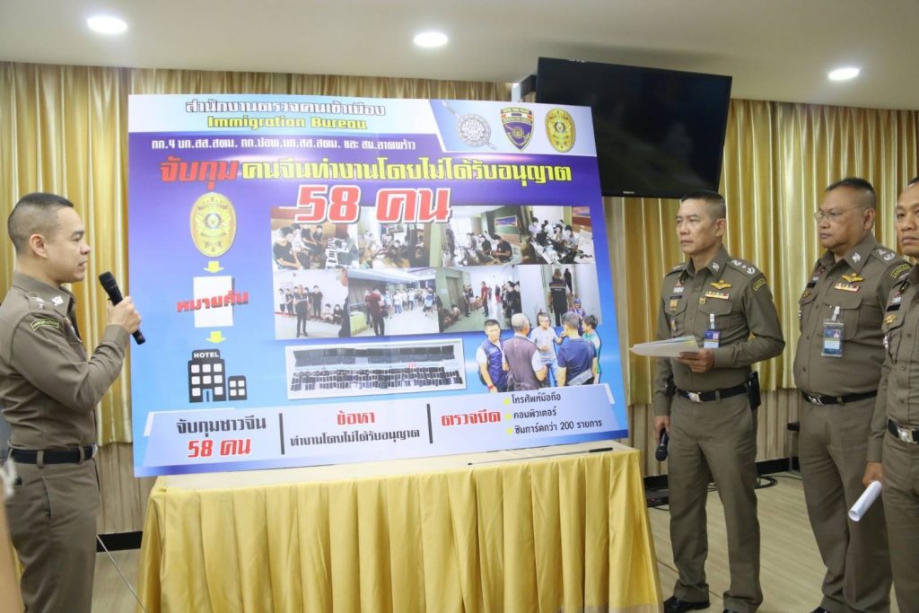 จากการ ตรวจสอบเบื้องต้นพบว่า มีจำนวนกลุ่ม WECHAT กว่า 100 กลุ่ม จากการสอบถาม กลุ่มคนร้ายสารภาพว่ามีกลุ่มนายทุนคนจีน ได้ว่าจ้างให้ตนเข้ามาทำงานในประเทศไทย โดยจะให้ค่าจ้าง จำนวน 6,000 หยวน หรือประมาณ 30,000 บาท ซึ่งตกลงค่าจ้างให้ในช่วงสิ้นเดือนหลังจากที่ได้เริ่มทำงาน เจ้าหน้าที่สืบสวนได้ตรวจสอบพบว่าผู้ต้องหาทั้งหมดไม่มีหนังสืออนุญาตให้ทำงานในราชอาณาจักรไทย จึงได้ทำการจับกุมผู้ต้องหาดำเนินคดีในส่วนของเป็นบุคคลต่างด้าวทำงานในราชอาณาจักรไทยโดยไม่ได้รับอนุญาตและถือได้ว่าเป็นบุคคลมีพฤติการณ์เป็นภัยต่อสังคมฯ จึงดำเนินการเพิกถอนการอนุญาตให้อยู่ในราชอาณาจักรและควบคุมกักตัวไว้ที่ห้องกัก สตม. เพื่อรอผลักดันส่งกลับสาธารณรัฐประชาชนจีนต่อไป