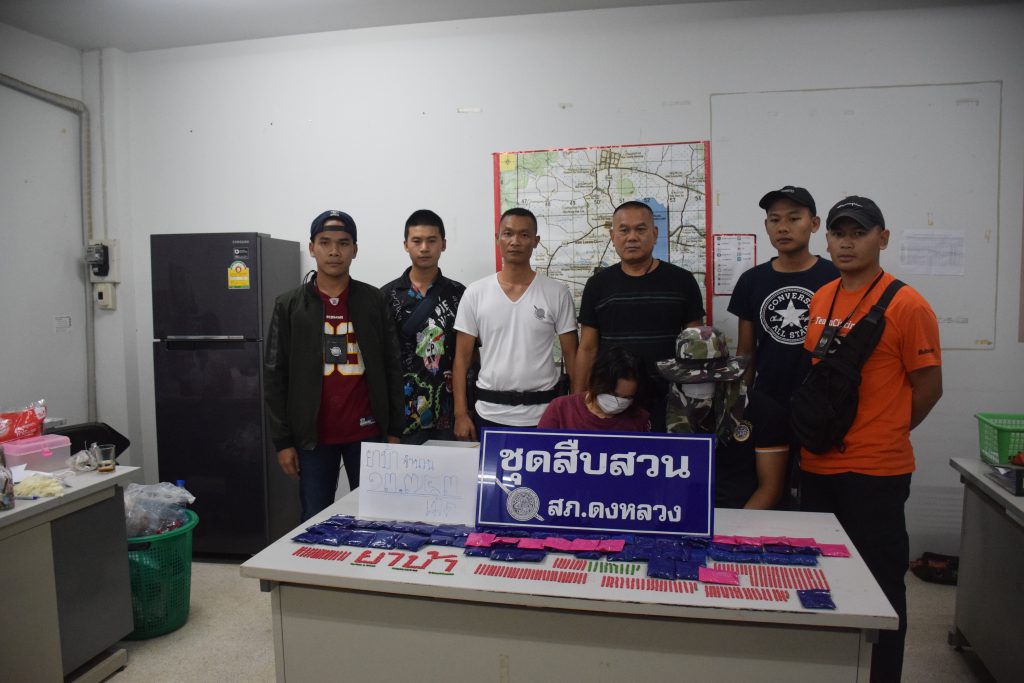 จนค่ำมืดได้พบรถยนต์กระบะคันดังกล่าว ขับมาจอดตรงจุดนัดหมาย เตรียมส่งยากันตำรวจจึงออกมาปิดล้อมรถคันดังกล่าวตรวจสอบพบชายหญิงภายในรถทราบชื่อคือนายยุทธ ทองผา อายุ 33 ปี อยู่บ้านเลขที่ 17 ม.5 ต.บางทรายน้อย อ.หว้านใหญ่ จ.มุกดาหาร เป็นคนขับ และนางสาวกลยสุดา ทองผาอายุ 23 ปี ซึ่งทั้ง 2 อยู่บ้านเดียวกัน ตรวจค้นภายในรถค้นใต้เบาะหลังแคป พบยาบ้ารวมจำนวน 13,594 เม็ด และโทรศัพท์มือถือจำนวน 2 เครื่องโดยทั้ง 2 รับสารภาพว่าของกลางยาบ้าทั้งหมดเป็นของตนกำลังจะมาส่งให้เครือข่ายแต่มาถูกจับเสียก่อน เจ้าหน้าที่จึงนำผู้ต้องหาทั้ง 2 และของกลางยาบ้าพร้อมรถมาส่งสารวัตรสอบสวน สภ.ดงหลวง เพื่อสอบสวนขยายผลถึงเครือข่ายกลุ่มนี้นำตัวมาดำเนินคดีตามกฎหมายต่อไป.