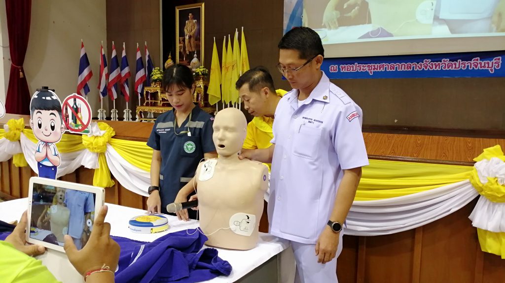 วันที่ 5 กันยายน 2562 ที่หอประชุมศาลากลางจังหวัดปราจีนบุรี นายพิบูลย์ หัตถกิจโกศล ผู้ว่าราชการจังหวัดปราจีนบุรี ได้เป็นประธานเปิดการประชุมเชิงปฏิบัติการพัฒนาทักษะการช่วยฟื้นคืนชีพ และการใช้เครื่องกระตุกหัวใจไฟฟ้าอัตโนมัติ (AED) โดยนางอังคณา หัตถกิจโกศล นายกเหล่ากาชาดจังหวัดปราจีนบุรี ได้กล่าวถึงการจัดอบรมในครั้งนี้ ด้วยกาชาดจังหวัดปราจีนบุรีพร้อมด้วยสาธารณสุขจังหวัดปราจีนบุรีได้เล็งเห็นถึงการเกิดภาวะหัวใจหยุดเต้นเฉียบพลัน เป็นสาเหตุการเสียชีวิตที่สำคัญในจำนวนผู้ป่วยที่หัวใจเกิดภาวะหยุดเต้น ซึ่งส่วนใหญ่โอกาสรอดชีวิตของผู้ป่วยค่อนข้างต่ำ
