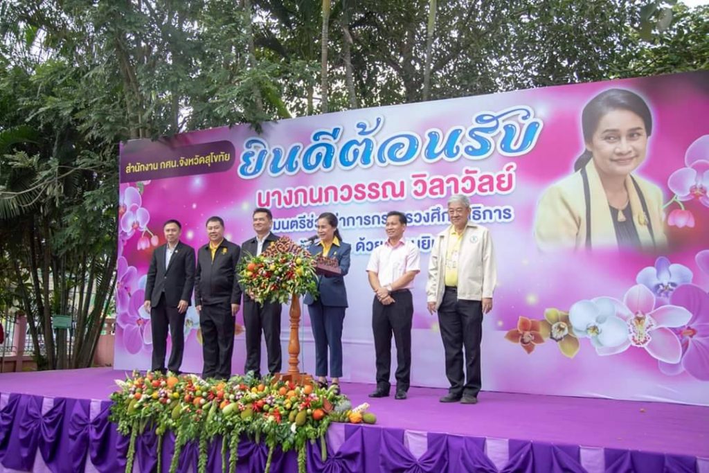 ผู้สื่อข่าวรายงานว่า วันที่ 6 กันยายน 2562 เวลา 08.30 น. ดร.กนกวรรณ วิลาวัลย์ รัฐมนตรีช่วยว่าการกระทรวงศึกษาธิการ และคณะ ลงพื้นที่ลงพื้นที่ตรวจเยี่ยมหน่วยงานทางการศึกษา พื้นที่จังหวัดสุโขทัย ณ ห้องสมุด “เฉลิมราชกุมารี” อำเภอสวรรคโลก จังหวัดสุโขทัย โดยมี นายไมตรี ไตรติลานันท์ ผู้ว่าราชการจังหวัดสุโขทัย นายสมเจตน์ ลิมปะพันธุ์ สมาชิกสภาผู้แทนราษฎรจังหวัดสุโขทัย เขต 3 คณะผู้บริหาร ครู กศน.นักศึกษา ประชาชน ภาคีเครือข่าย ผู้นำชุมชน และบุคลากร กศน.จังหวัดสุโขทัย ให้การตอนรับ