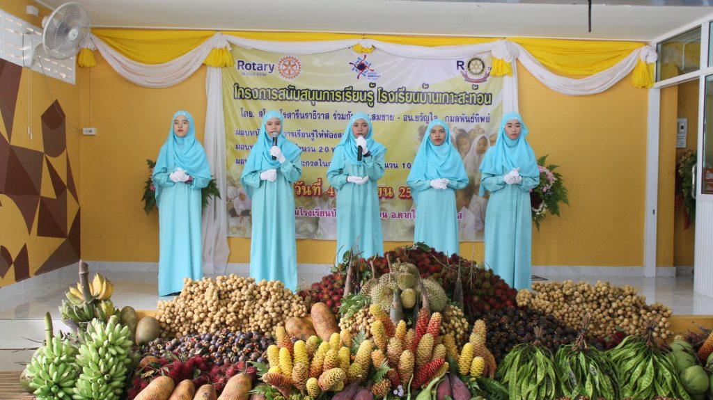 วันนี้ (4 ก.ย. 62) ที่หอประชุมโรงเรียนบ้านเกาะสะท้อน อำเภอตากใบ จังหวัดนราธิวาส นายธรรมรงค์ คงวัดใหม่ รองผู้ว่าราชการจังหวัดนราธิวาส เป็นประธานโครงการสนับสนุนการเรียนรู้ โรงเรียนบ้านเกาะสะท้อน โดยมีนายประยูร พุทธชาติ นายอำเภอตากใบ นายศุภศักดิ์ พุฒิไพโรจน์ นายกสโมสรโรตารีนราธิวาส คณะผู้บริหาร สมาชิกสโมสรโรตารีนราธิวาส ตัวแทนสำนักงานเขตการศึกษา เขต 2 จังหวัดนราธิวาส และนายกองค์การบริหารส่วนตำบลเกาะสะท้อน ร่วมกิจกรรม
