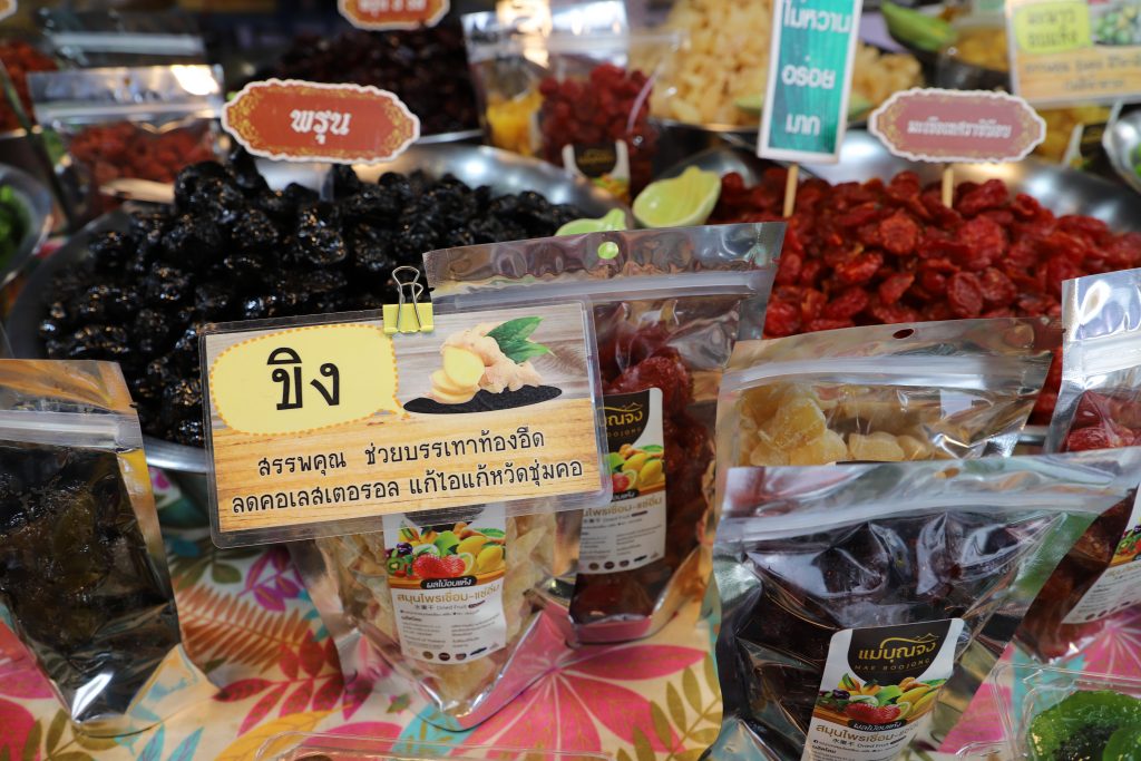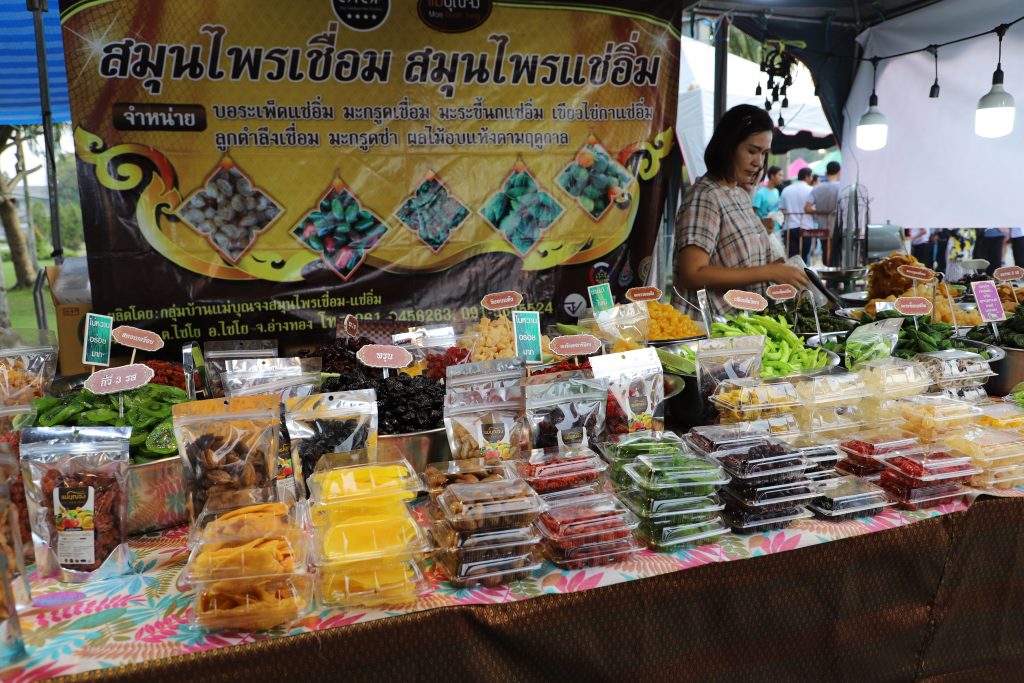 หนึ่งในร้านค้าที่ประชาชนนิยมซื้อและมาอุดหนุนกันอย่างไม่ขาดสาย ก็จะเป็นร้านขายสมุนไพรเชื่อม สมุนไพรแช่อิ่ม จากกลุ่มแม่บุนจา ตำบลไชโย อำเภอไชโย จังหวัดอ่างทอง โดยที่นี่จะมีทั้งลูกตำลึงเชื่อม บอระเพ็ดเชื่อม เขียวไข่กาแฟแช่อิ่ม มะกรูดเชื่อม มะระขี้นกเชื่อม ผลไม้อบแห้งตามฤดูกาลที่มีให้เลือกซื้อไปรับประทานมากมาย โดยราคาขายก็จะเริ่มต้นที่ 60 บาท ถึง 100 บาท แล้วแต่ชนิดของสมุนไพรที่นำมาทำแช่อิ่ม