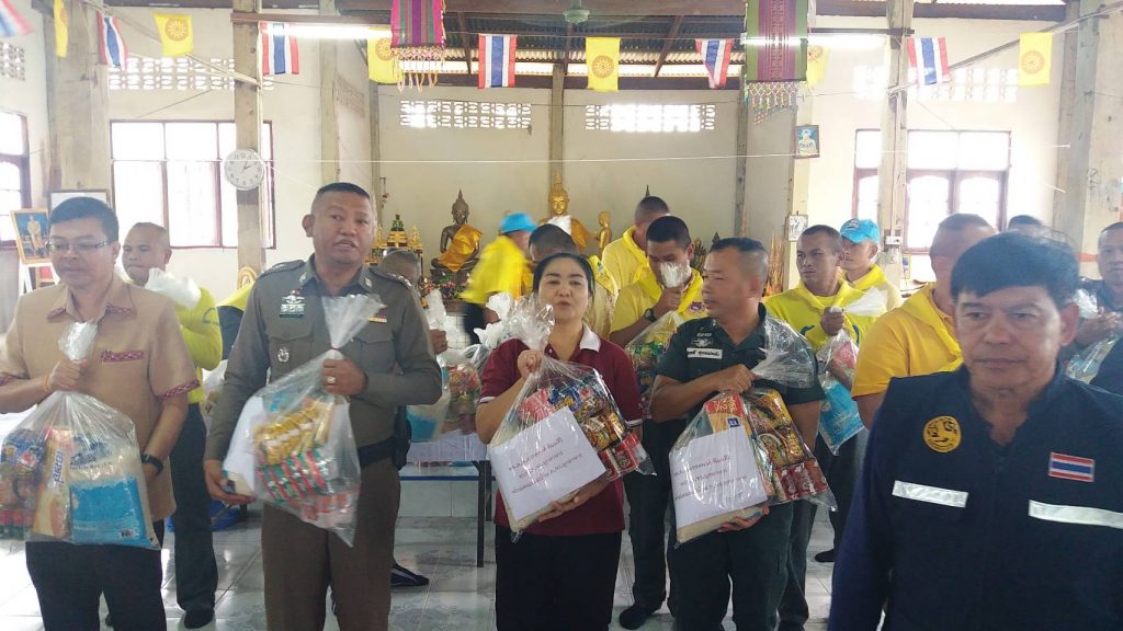จากนั้นผู้ว่าราชการจังหวัดมุกดาหาร พร้อมคณะได้เดินทางไปมอบถังยังชีพ ให้กับประชาชน ที่ยังได้รับผลกระทบจากอุทกภัย พายุโพดุล หมู่ที่ 6 บ้านโคกสว่าง ตำบลเหล่าหมี อำเภอดอนตาล จำนวน 51 หลังคาเรือน ณ วัดโคกสว่าง หมู่ 6 ตำบลเหล่าหมี ซึ่งเป็นพื้นที่ลุ่มและยังถูกน้ำท่วมขัง เนื่องจากไม่สามารถระบายลงสูห้วยบังอี่ได้ เพื่อเป็นการบรรเทาความเดือดร้อน เบื้องต้น โดยผู้ว่าราชการจังหวัดมุกดาหาร ได้มอบหมายให้นายกองค์การบริหารส่วนตำบลเหล่าหมี ได้ร่วมกับผู้นำท้องถิ่น หาแนวทางระบายน้ำออกจากพื้นที่โดยเร็ว เพื่อป้องกันนาข้าวได้รับความเสียหาย หากถูกน้ำท่วมขังเกิน 7 วัน และการให้ความช่วยเหลือด้านอื่น ๆ ซึ่งหากเกินขีดความสามารถขององค์กรปกครองส่วนท้องถิ่น ให้ประสานไปยัง อำเภอ และจังหวัด เพื่อให้การช่วยเหลือต่อไป