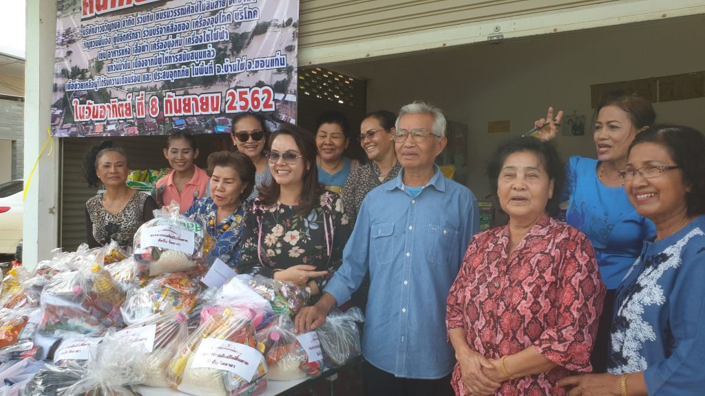หลังจากนี้ได้ร่วมกับสมาชิกชมรมวรรณศิลป์ฯ สโมสรไลออนส์พัทยาพระตำหนัก สโมสรไลออนส์พัทยา สัตหีบ นางยุพินทอง ทิมรอด เจ้าของบ้านโชคชัยและห้องอาหารสไมล์เฮ้าส์ และนายสุทธิชัย เกียรติมนตรี เจ้าของเขียงหมูสัตหีบ ตลอดจนผู้มีจิตศรัทธาอันเป็นกุศลที่ได้มาร่วมกันบริจาคสิ่งของแล้ว ยังได้ร่วมกันค้ดแยกและบรรจุลงหีบห่อเป็นถุงยังชีพ เพื่อส่งมอบให้การช่วยเหลือผู้ที่ได้รับความเดือดร้อนและประสบอุทกภัยในพื้นที่ อ.บ้านไผ่ จ.ขอนแก่น ต่อไป โดย บริษัท ข้าวขวัญกมล จำกัด ได้จัดรถบรรทุก 6 ล้อ พร้อมเจ้าหน้าที่นำส่งให้ถึงมือพี่น้องชาว อ.บ้านไผ่ จ.ขอนแก่น โดยกำหนดออกเดินทางในช่วงเช้าของวันที่ 7 ก.ย.62 คาดว่าจะประสานกับหน่วยงานในพื้นที่ เพื่อแจกจ่ายสิ่งของดังกล่าวให้กับผู้ประสบอุทกภัยได้ในวันที่ 8 ก.ย.62