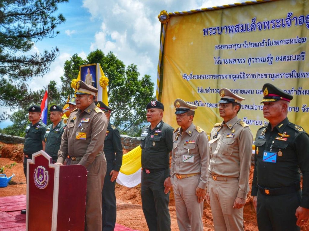 เมื่อวันที่ 5 กันยายน 2562 เวลา 13.10 น. ณ ฐานปฏิบัติการ ดอยหลักแต่ง ต.แม่อาย อ.แม่อาย จ.เชียงใหม่ : พล.ต.ต.สุนทร เฉลิมเกียรติ รอง ผบช.ตชด.พร้อมด้วย พ.ต.อ.สมกูล กาญจนอุดมการรอง ผบก.ตชด.ภาค 3,พ.ต.อ.โชคชัย ชูแสง ผกก.ตชด.33,พ.ต.ต.กิตติพงษ์ ชัยอนันต์ ผบ.ร้อย ตชด.334,ร.ต.อ.วิวัฒน์ชัย จันทบูรณ์ รองผบ.ร้อย ตชด.334,ร.ต.อ.อดุลย์ คงคล่อง รองผบ.ร้อย ตชด.334 พร้อมข้าราชการตำรวจ และหน.ส่วนราชการใน พื้นที่ อ.แม่อาย จ.เชียงใหม่