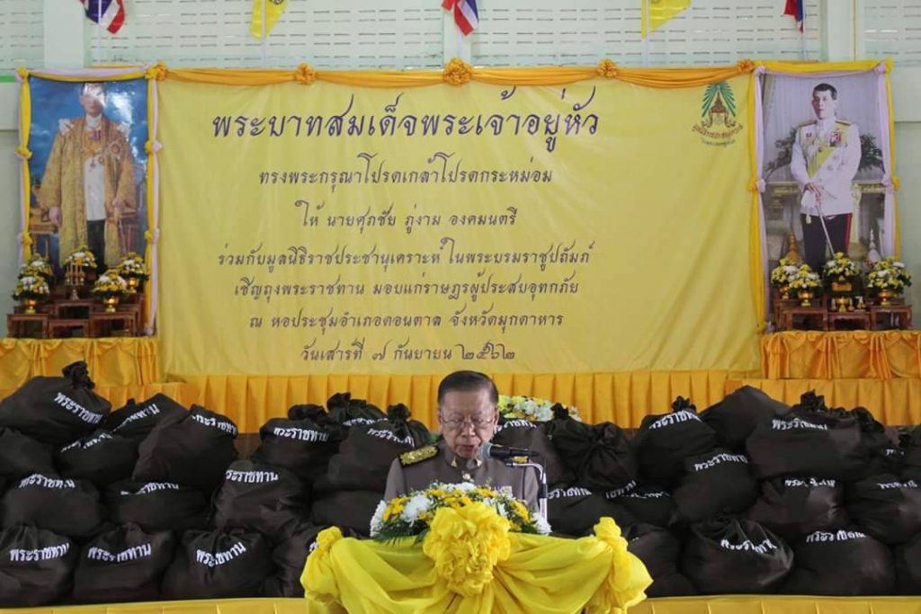 เมื่อวันที่ 7 กันยายน 2562 พระบาทสมเด็จพระเจ้าอยู่หัว ทรงพระกรุณาโปรดเกล้าโปรดกระหม่อมให้ นายศุภชัย ภู่งาม องคมนตรี ร่วมกับมูลนิธิราชประชานุเคราะห์ ในพระบรมราชูปถัมภ์ เชิญสิ่งของพระราชทาน มอบแก่ประชาชนผู้ประสบอุทกภัย ในเขตพื้นที่อำเภอดอนตาล และอำเภอนิคมคำสร้อย จำนวน 1,000 ชุด ณ หอประชุมที่ว่าการอำเภอดอนตาล จังหวัดมุกดาหาร
