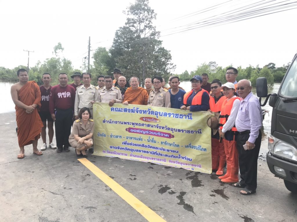 วันที่ 9 ก.ย.62 เวลา 09.00 น. : พ.ต.อ.รินณวัฒน์ ภูวัฒนติกานต์ ผกก.ตชด.22 มอบหมายให้ พ.ต.ท.เกียรติทวี บุญมา ผบ.ร้อย ตชด.225 พร้อมด้วย ร.ต.อ.ทวี คำแพง รอง ผบ.ร้อย ตชด.225,ร.ต.อ.ไพรัตน์ เจริญพงษ์ หน.ชุดช่วยเหลือผู้ประสบภัย พร้อม กพ.13 นาย ร่วมกับคณะสงฆ์จังหวัดอุบลราชธานี นำโดย รองเจ้าคณะจังหวัดฯ และสำนักพระพุทธศาสนาจังหวัดอุบลราชธานี นำเรือท้องแบนออกให้ความช่วยเหลือประชาชนผู้ประสบอุทกภัย ในเขตพื้นที่ บ้านเมืองเก่า ต.เมืองเดช อ.เดชอุดม จ.อุบลราชธานี และพื้นที่ บ้านท่าเจริญ ต.โพนงาม อ.เดชอุดม จ.อุบลราชธานี โดยได้มีการมอบอาหาร เครื่องอุปโภค-บริโภค ให้กับผู้ประสบอุทกภัยเพื่อช่วยบรรเทาความเดือดร้อนในเบื้องต้น