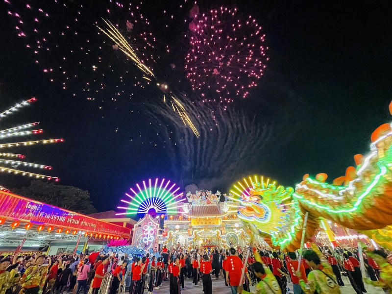 ที่หน้ามูลนิธิลำนารายณ์ อ.ชัยบาดาล จ.ลพบุรี นายสุรชัย เชิดชูชัยทิพย์ ประธานกรรมการศาลเจ้าพ่อลำนาราย์ ชาวอำเภอชัยบาดาล(หรือลำนารายณ์) จ.ลพบุรี ได้มีพิธีอัญเชิญเจ้าพ่อเจ้าแม่ลำนารายณ์ออกมาประดิษฐาน ตั้งขบวนแห่โคมมงคล อัญเชิญองค์เจ้าพ่อเจ้าแม่ลำนารายณ์ อัญเชิญกระถางธูปองค์หลวงปู่ไต้ฮง กระถางธูปเจ้าแม่กวนอิม กระถางธูปองค์เทพเจ้าไฉ่ซิ้งเอี๊ย กระถางธูปองค์โป๊ยจุง เซี้ยฮุก และกระถางธูปองค์ไต่เสี่ยฮุกโจ้ว แห่รอบตลาดลำนารายณ์ พร้อมขบวนหล่อโก้ว คณะสิงโตกวางเจา มังกรทอง พร้อมวงดุริยางค์จากโรงเรียนต่างๆ โดยมีพ่อค้า ประชาชนชาวลำนารายณ์ร่วมในขบวนแห่ประเพณีอันศักดิ์สิทธิ์จำนวนมาก
